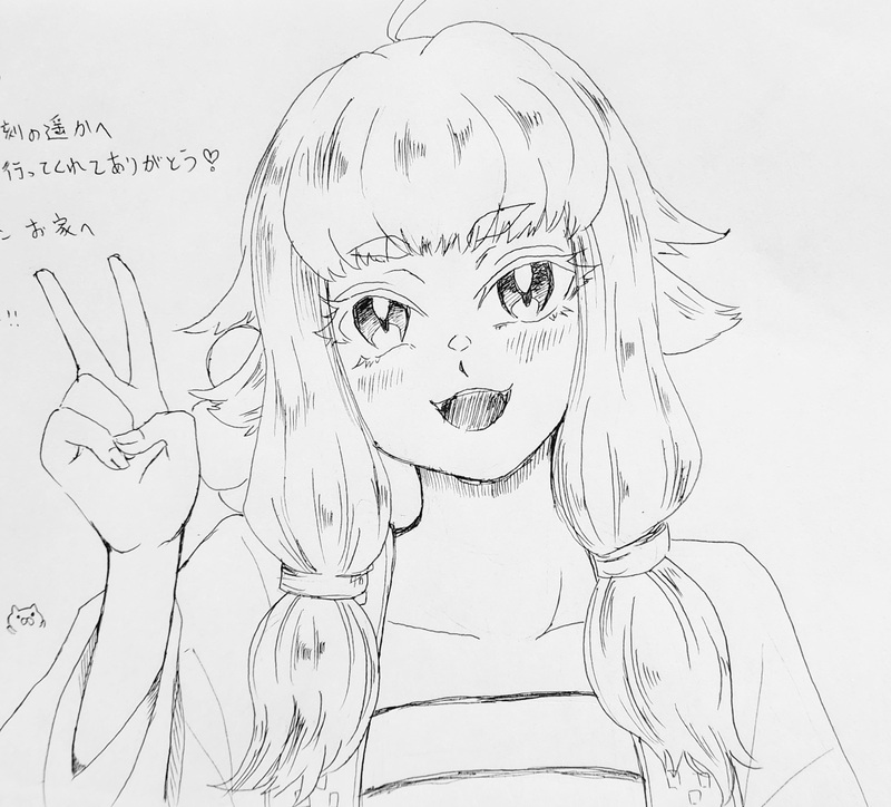 福岡旅行最終日にクロハさんとイラスト交換した〜!クロハさんの推しの北谷ちゃん描きました😊