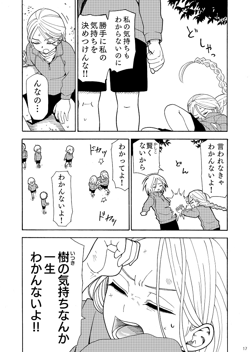 mikopoiragi☆quiet followDONE⑰ネームまでは翼のセリフが『「おまえ」の気持ちなんか一生わかんないよ!』だったけど、読んでもらった友達に「翼は樹をお前って言わない」って言われたので、それに従って修正した。1p前の翼は男ムーブを見せたいコマだったので、そこだけは「お前」呼びを残した。 #オリジナル original #私のながい友だち myLongtimeFriend Tap to full screen (size:800x1127).Repost is prohibited Let's send reactions! freqpopularsnackothersPayment processing Replies from the creator Follow creator you care about!☆quiet follow mikopoiragiDOODLEラクガキまとめて。イラストを漫画風にコマ割って無造作に並べると漫画じゃないのに漫画描いた風になって良いです。 mikopoiragiDOODLEトーンのモアレを防げない 2 mikopoiragiMAIKINGのじゃ。wip琥珀の口元の黒子は「コハク・イン・ブルー」の前身となるネームに登場するとある女子高生キャラのデザインからの名残り。叔父と姪という事で瑪瑙の口元にも黒子を付け足した。今考えると主人公である琥珀に黒子のような特徴付けは本当は有っても無くてもよかった物なのかもしれない。 mikopoiragiMAIKINGのじゃ。wip自分一人だと気の強すぎるキャラを描いてしまいがちなので琥珀のような気弱さと強さが同居するバランスの取れたキャラを生み出せて良かったなと思いました。ずっと漫画は描いてきたけれど、「コハク・イン・ブルー」は初めてしっかりと話し合いによって最終稿まで完成させれた作品かもしれません。 mikopoiragiMAIKINGのじゃ。wip mikopoiragiMAIKINGのじゃ。wipここに記してあるコピペはコピーしてハサミで切って糊で貼る事を指します。コハク・イン・ブルーをお読みいただき有難うございました。top画面からは消えましたが「最新の読切」の項目にはまだ表示されてるので、ぜひお友達と一緒にお読み下さい。一仕事終え「これからどうしよう……」と毎日ぼんやりしてます。 related works mikopoiragiDONE㉕2コマ目の樹は主線にトーンを重ねた上にメディバンのメッシュブラシで主線をホワイトでなぞってボケさせた。こういうのアナログでは簡単にやれないからデジタルで仕上げ出来てよかった。上手くできたかはなぞ。 mikopoiragiBLANK㉛もっと深い時間、明け方とかにポイするつもりだったけど、時間が…。 mikopoiragiDONE㉒3コマ目の翼と5コマ目の樹の顔が可愛く描けて良かった。鼻をちゃんと描こうと思ってるんだけど、「鼻の無い女の子の顔」が好きすぎるあまり、ちょいちょい鼻を省略して描いてしまう。鼻を省略してる女の子の絵って可愛いよな…。でも鼻はちゃんと描かないとなぁ…。ジレンマ。 mikopoiragiDONE㉘1コマ目の翼がサムネイルに選ぶくらい可愛く描けて気に入ってるんだけど、見るたび「顔がでかいなぁ…」と思う。でもめちゃくちゃいい表情してるから、下手だけど自分では気に入ってる。他のコマの絵は全然ダメ。 mikopoiragiDONE㉙樹の独白で使ったフォントはメディバンのユリトロというフォント。 mikopoiragiDONE⑱5コマ目の背景めちゃくちゃ丁寧に描けてる。草はメディバンで62番、30lグラデ、木には素材の木1のトーン、地面には木2のトーンを貼って、ブラシのスパッタリング、メッシュでトーンを削った。アナログではこんなにきれいにトーン削れないから、かなりデジタルっていうかメディバン君のおかげ。 mikopoiragiDOODLE㉜ジャンプルーキーに漫画を投稿しています。日間人気ランキング7位・閲覧数1万pv超えありがとうございます…! mikopoiragiDONE⑲1コマ目の不自然な生垣がペン入れの時コロッケにしか見えなくて参った。2コマ目の背景はめちゃくちゃきれいにトーン貼れてよかった。デジタルって仕上げがきれいにできるから調子に乗って4コマ目は背景をキラキラさせ過ぎてしまった。 mikopoiragiDONE㉔ recommended works RiioTRAINING竈門ちゃんせんが描いてみた。 kswg_tmtDOODLE秋吉くんと高岡さんの備忘みたいな#オリジナル SweetItemDOODLEニ゛ャー 奈影_DOODLE あやむPAST自創作「バンギャ組!」のオリジナルロゴ。 hmus162CAN’T MAKEメンヘラちゃん あやむPAST【創作/公務員組】こう見えても刑事さんです。 いちいねこPAST創作キャラ、企画の子 gumiPROGRESSラフからの線画。 2