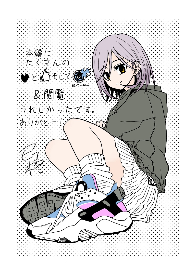 mikopoiragi☆quiet followDONE本編の答え合わせ(幕間)と幼馴染のデート(恋愛感情ゼロ男女)。12月に投稿するはずが、なんのかんの忙しくさせてもらって今月までかかってしまった。IT2まだ観れてない…。DVDはたしか今月発売。観るぞ。 #オリジナル original #私のながい友だち myLongtimeFriend show all(+10 images) Tap to full screen (size:800x1129).Repost is prohibited Let's send reactions! freqpopularsnackothersPayment processing Replies from the creator Follow creator you care about!☆quiet follow mikopoiragiDOODLEラクガキまとめて。イラストを漫画風にコマ割って無造作に並べると漫画じゃないのに漫画描いた風になって良いです。 mikopoiragiDOODLEトーンのモアレを防げない 2 mikopoiragiMAIKINGのじゃ。wip琥珀の口元の黒子は「コハク・イン・ブルー」の前身となるネームに登場するとある女子高生キャラのデザインからの名残り。叔父と姪という事で瑪瑙の口元にも黒子を付け足した。今考えると主人公である琥珀に黒子のような特徴付けは本当は有っても無くてもよかった物なのかもしれない。 mikopoiragiMAIKINGのじゃ。wip自分一人だと気の強すぎるキャラを描いてしまいがちなので琥珀のような気弱さと強さが同居するバランスの取れたキャラを生み出せて良かったなと思いました。ずっと漫画は描いてきたけれど、「コハク・イン・ブルー」は初めてしっかりと話し合いによって最終稿まで完成させれた作品かもしれません。 mikopoiragiMAIKINGのじゃ。wip mikopoiragiMAIKINGのじゃ。wipここに記してあるコピペはコピーしてハサミで切って糊で貼る事を指します。コハク・イン・ブルーをお読みいただき有難うございました。top画面からは消えましたが「最新の読切」の項目にはまだ表示されてるので、ぜひお友達と一緒にお読み下さい。一仕事終え「これからどうしよう……」と毎日ぼんやりしてます。 related works mikopoiragiDONE⑱5コマ目の背景めちゃくちゃ丁寧に描けてる。草はメディバンで62番、30lグラデ、木には素材の木1のトーン、地面には木2のトーンを貼って、ブラシのスパッタリング、メッシュでトーンを削った。アナログではこんなにきれいにトーン削れないから、かなりデジタルっていうかメディバン君のおかげ。 mikopoiragiDOODLE㉜ジャンプルーキーに漫画を投稿しています。日間人気ランキング7位・閲覧数1万pv超えありがとうございます…! mikopoiragiDONE㉘1コマ目の翼がサムネイルに選ぶくらい可愛く描けて気に入ってるんだけど、見るたび「顔がでかいなぁ…」と思う。でもめちゃくちゃいい表情してるから、下手だけど自分では気に入ってる。他のコマの絵は全然ダメ。 mikopoiragiBLANK㉛もっと深い時間、明け方とかにポイするつもりだったけど、時間が…。 mikopoiragiDONE㉒3コマ目の翼と5コマ目の樹の顔が可愛く描けて良かった。鼻をちゃんと描こうと思ってるんだけど、「鼻の無い女の子の顔」が好きすぎるあまり、ちょいちょい鼻を省略して描いてしまう。鼻を省略してる女の子の絵って可愛いよな…。でも鼻はちゃんと描かないとなぁ…。ジレンマ。 mikopoiragiDONE⑲1コマ目の不自然な生垣がペン入れの時コロッケにしか見えなくて参った。2コマ目の背景はめちゃくちゃきれいにトーン貼れてよかった。デジタルって仕上げがきれいにできるから調子に乗って4コマ目は背景をキラキラさせ過ぎてしまった。 mikopoiragiDONE㉔ mikopoiragiDONE㉙樹の独白で使ったフォントはメディバンのユリトロというフォント。 mikopoiragiDONE㉕2コマ目の樹は主線にトーンを重ねた上にメディバンのメッシュブラシで主線をホワイトでなぞってボケさせた。こういうのアナログでは簡単にやれないからデジタルで仕上げ出来てよかった。上手くできたかはなぞ。 recommended works kswg_tmtDOODLE #ポッキーの日 #オリジナル なまえのない子DOODLEうちの子がかわいい(親バカ)#オリジナル 2 karinosomenoDONEBLみ注意です… 4 夢想曲PAST去年の年末に無事完結させる事のできた自創作の小説(http://ncode.syosetu.com/n4188ds/)のロゴ。作るの楽しかったけど楽しすぎて読みやすさは考慮出来てなかったなと反省。当時は徐々に右に行くほど破損していくって表現したかったんだろうけど、読みにくいのはロゴとしてダメな気が今はする。 リンドウDOODLE使ってみたら思いの外楽しかったペンNo.1 3 にゃんちゅうPAST線画 4 パプリカMOURNING8月までポイピクがやってたお題スロットで「貧乳な」「Tシャツの」「人魚」だったんですけど色々やってたら9月になっちゃったのでね…2019.9.3 Do not Repost・東龍PASThttps://fantia.jp/fanclubs/4768▲お金アイコンくださる方へ(笑)あと、BOOTHにて原画処分したりしてますので~ 魚ぜんまいPROGRESS