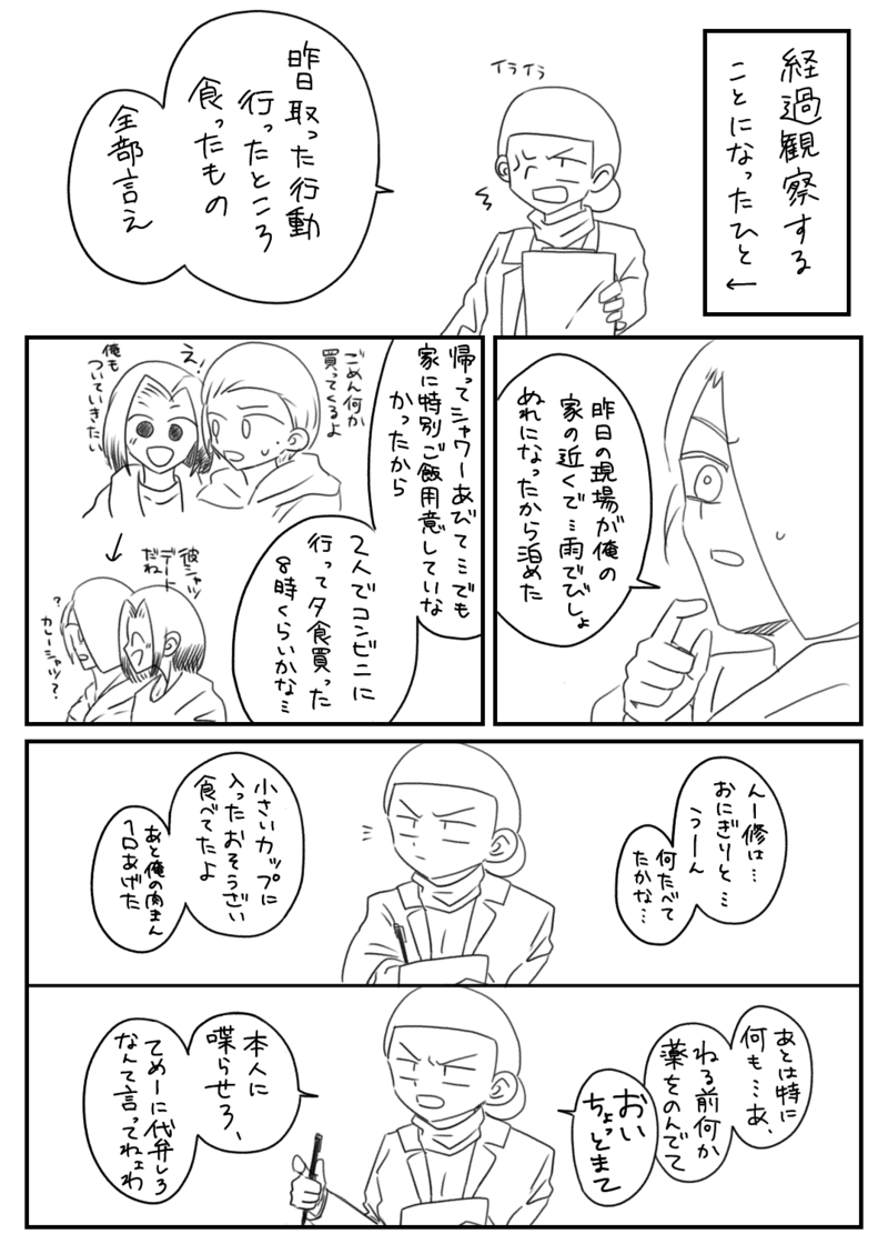 cisum433433☆quiet followMOURNING修一の世話する話(①経緯篇)描きたいやつまであと3篇もあるの只々しんどい show all(+9 images) Tap to full screen (size:1075x1518).Repost is prohibited Let's send reactions! freqpopularsnackothersPayment processing Replies from the creator Follow creator you care about!☆quiet follow cisum433433MOURNINGバカの修優↑18?→y/n 2 cisum433433DOODLE平常時← →体調不良時 cisum433433MEMOとんでもねえの描いてる気がする出来上がるかわからないこのあとは青年と優と修しか出てこない 2 cisum433433DOODLE形勢逆転大好きマン(百合) 2 cisum433433DOODLE「えろい」より「えっち」って言う方がすけべだと思う 異論は認める cisum433433DOODLE俺が描ける精一杯の青亜 2 recommended works cisum433433DONE性癖に則ってボコったやつが2枚目にあるので暴力反対派はお引き取りください 2 cisum433433DOODLE修パパ氏仮案目以外ぜんぶ母親似であって欲しい死ぬほど優しいお父さんな気がする名前どうしようかな、東条栞弦とかにしようかな画数良いし cisum433433DOODLE白髪は長くて良いんですよ cisum433433DOODLE休日に見たくない顔ランキング1.2位にスーパーで会うやつ cisum433433TRAINING東条家自体、赤というか紅が好きそうっていうあれなんだけど修一何似合うかな…外面いいから爽やかな色も似合うな 2 cisum433433DOODLEあとで中華まんの食べ方3種でもこしらえようかな注記修一は買い食いできる家庭になかったので友達とあの頃やった系イベントに異常に執着しますそれどころじゃなかった優太郎は買い食いの概念知らないので「修なんで買い物にそんな興奮してんの?」と思っています。「たまに一緒に買い物行くのとは違うのだろうか?」そうなんだよ優くん…買い食いって凄いんだぜ…!一方亜紀「ついてくんなうぜえ死ね」 cisum433433DOODLE中華まん、具はなにがいい?シリーズ①優→なんでも美味しく食う。ただし、サイズで選ぶので大体肉系になる。(良い子なのでゴミは家に持って帰って捨てます)(あと笑わない故に優太郎の表情筋は死んでる設定なので猫と戯れるくらいの感覚で修一にめちゃめちゃフニフニされててくれない?って私が言ってた)(毎度注釈の方が長い) cisum433433DOODLE中華まんシリーズ②修一「優が肉まんなら俺も肉まん」知らないけど、とりあえずワクワクドキドキがアレして両手で肉まん持ってそう cisum433433DOODLE中華まんシリーズ③亜紀→5分待ったらあんまんが蒸し上がるというので待った。あんまん食べたいが為にコンビニ寄ったのかわいいね!!!(修一は猫舌と初中華まんなので食べるのクソ遅いです) 2