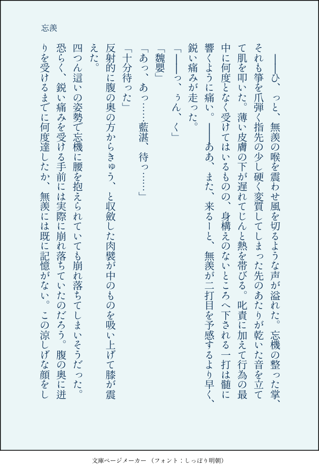 schrodinger1984☆quiet followMEMO忘羨ちょっとえろ前後は気が向いたら show all(+1 images) Tap to full screen (size:630x928).Repost is prohibited Let's send reactions! freqpopularsnackothersPayment processing Replies from the creator Follow creator you care about!☆quiet follow schrodinger1984MEMO宋暁燕行歌は蓮華訳のため微妙でも目を瞑ること 2 schrodinger1984MEMO薛暁珍しいものを書いた。 schrodinger1984MEMO曦澄ワンドロワンライお題「願い事」とろろそば子に捧げる。 3 schrodinger1984MEMO曦澄ワンドロワンライお題「夜狩」とろろそば子に捧げる※大量の誤字なおしました※夜狩についていかないお兄様、あると思って。 3 schrodinger1984MEMO曦澄ワンドロワンライお題「看病」とろそばちゃんに捧げる 2 schrodinger1984MEMO焼きましゅまろ宋暁 2