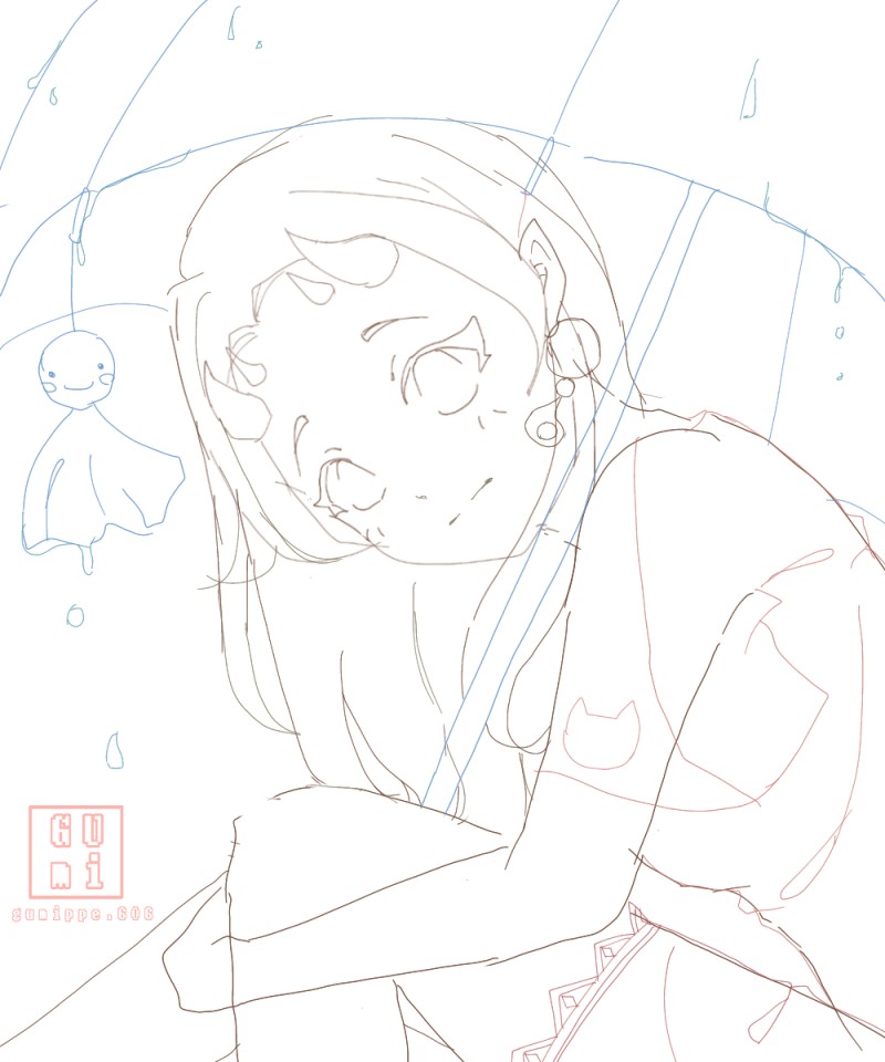 ラフからの線画。