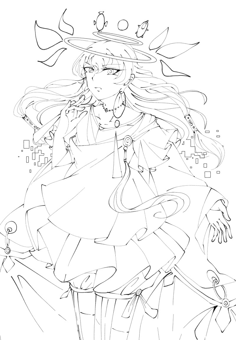 複雑すぎて線画渋ってたこいつがやっと終わりもうして、これから色塗ったりするのじゃい うちの子