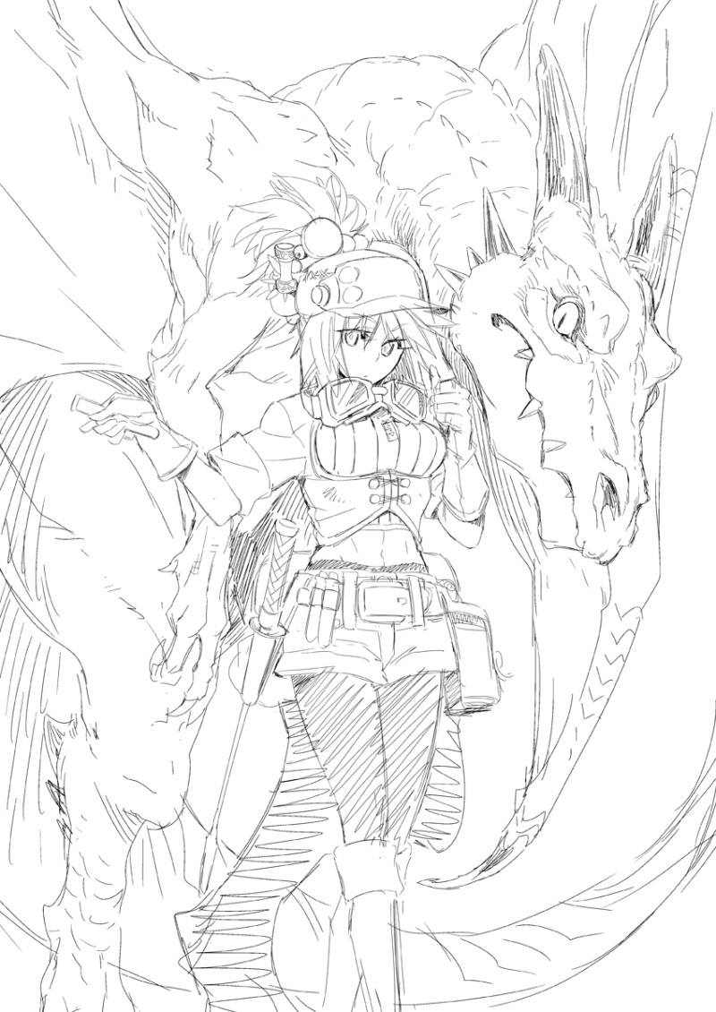 【お仕事】ポイピク様からの依頼の続き。竜はこんな感じで行くことに、キャラの顔とかも少し微修正してます。次は竜の装具のラフを詰めていきます。