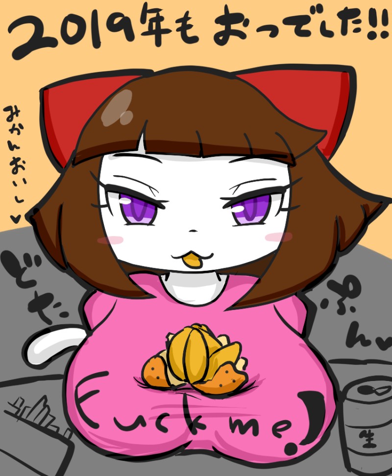 今年の描き納め。おっぱいの上にみかん乗っけて食べてるうちの淫魔さん。