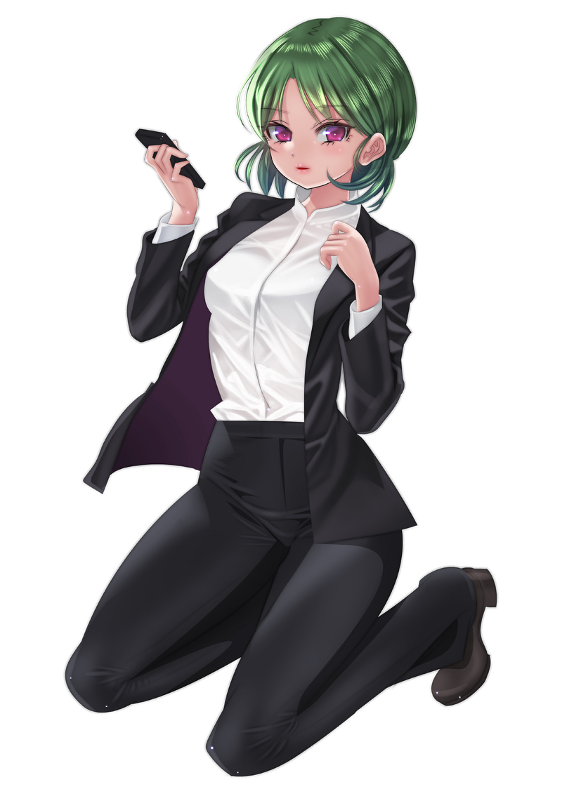パンツスタイルのキャラは描いた事がなかったので、自信がないのですがお納めください。