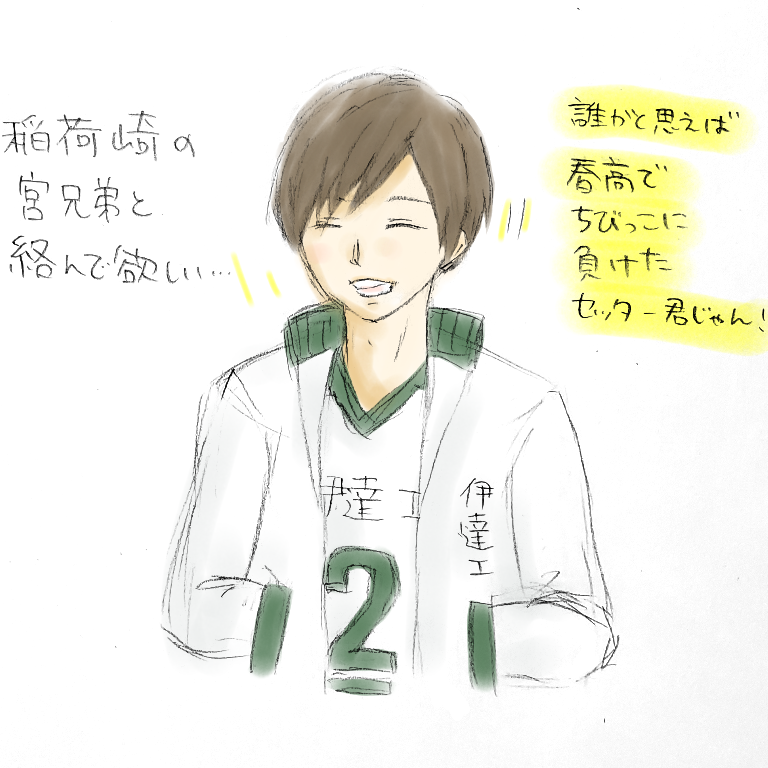 伊達工が烏野を破って全国デビューしたインハイ。稲荷崎が出てきたのかは不明だけど、常連高っぽいから出てきたと仮定して、侑が伊達工に絡んでいく可能性は高いのでは。「アンタらが翔陽くん負かしたん?へぇ〜えらいべっぴんさんやん」(適当)などと絡んで!欲しい!2枚目は子供が塗ってくれた。