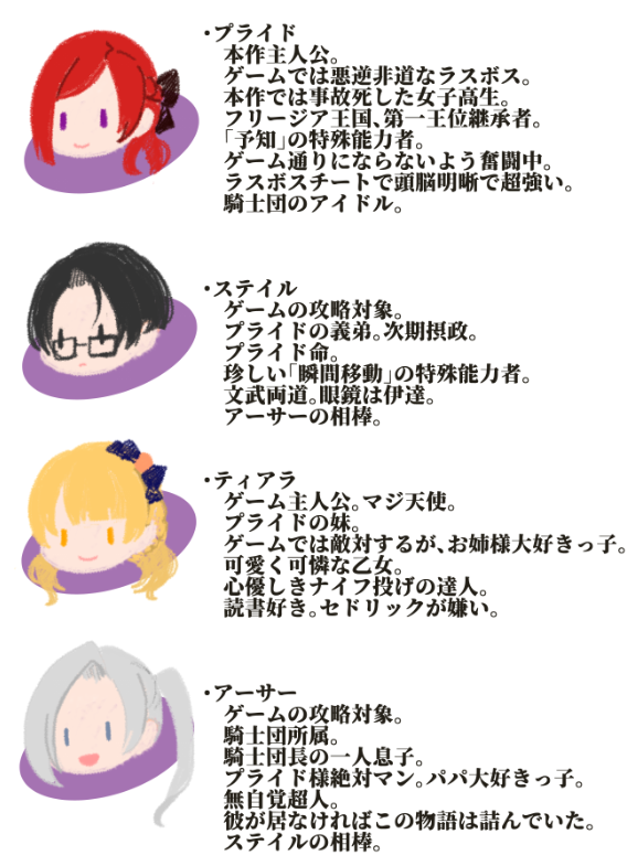なろう系で珍しく読めているので、個人的記念に楽しいよっていうキャラ説明…