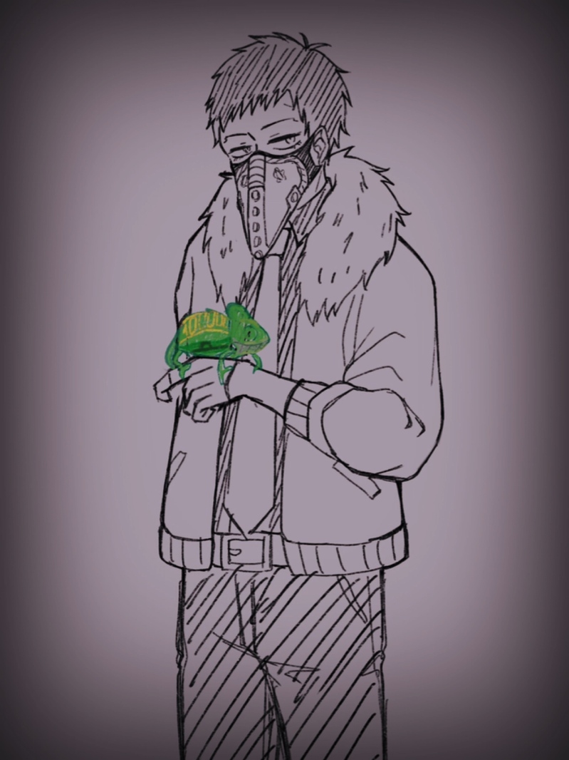 カメレオンとオバホの組み合わせは絶対描きたいので、これをもうちょい調整して線画にしたいです。