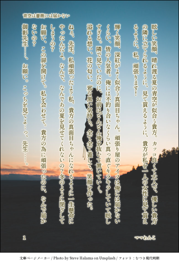 082musume☆quiet followDONE向日葵の花言葉は【貴方だけを見つめる】。マリみかマリです show all(+4 images) Tap to full screen (size:630x928).Repost is prohibited Let's send reactions! freqpopularsnackothersPayment processing Replies from the creator Follow creator you care about!☆quiet follow 082musumePROGRESSR18です。サニケル進捗(本編ネタバレなし)頑張ったので見てくれると嬉しい 2 082musumePROGRESSあまりにも見てほし過ぎてポイピクにあげるサニーの言葉に涙腺崩壊しちゃうケルくんのシーンです 4 082musumeMENU10/30予定のsuntan本、最初の小説部分出来たので晒しときます。文が多くなったらpixivにも置く予定。 4250 082musumeDOODLEショタ🏀の🥧ズリと頬張り🍌。今🏀の尿道責め産卵プレイのエロ 2 082musumeMOURNINGAIくんに頼んでまた一緒に書いた。自分も少し手を加えてるけど、気軽に読めるエロ小説最高だァ☀🏀。途中記憶喪失ネタ入れたかったみたいだけどやめた痕跡あるの好き 5735 082musumeMOURNINGAIのべくんメインで、時々私が添削した、サニケルえろ文出来た。ショタなのに同棲してたりしっちゃかめっちゃかだがえろかったのでよし! 4207 recommended works anji_gsDOODLEマリみか風 082musumeDONEJKコスsuntan兜合わせどエッチに出来たぜ👍pass→🏀の植物+夢🏀の好きな飲み物小文字英語 4 semo_pppDOODLE乱馬良牙 2 べる太/horizon blueMOURNING『愛すべき我らが生物教師2』にて展示した画像になります。素晴らしいイベントだった…😌 6 MoynaDOODLE 5vOSDIE7P6Jq7FNDONE 6688 imo_____277PAST⚠️付き合って1年記念日の2人のお話 多分むすびい時代にお付き合いし始めてるアチムの関西弁はいつものごとくふわっとしてます闇鍋会の時にシチュとセリフをお借りして書いたものになります 5 fumiMAIKING abandon.WKPASTxp摸鱼产物随机掉落的小短片没有审核所以错别字✓bug✓没有逻辑✓ 992