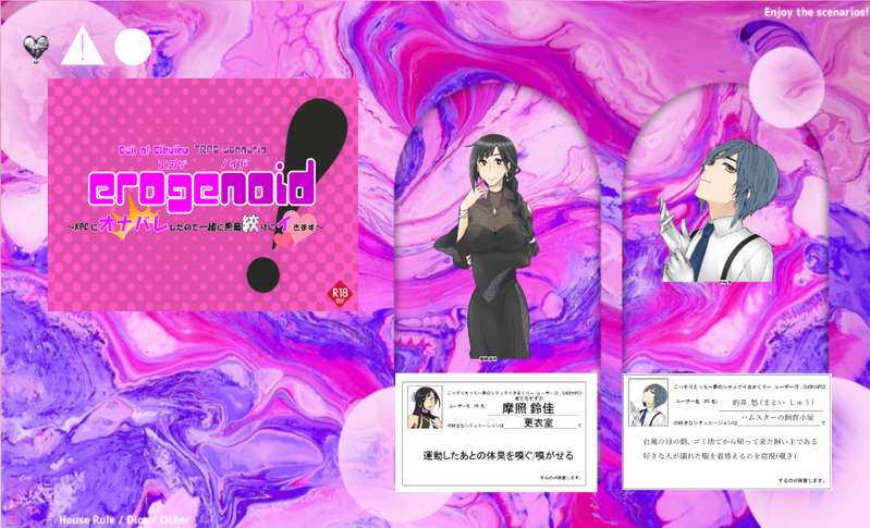 text_7☆quiet followDOODLE2025.05.23「erogenoid ~KPCにオナバレしたので一緒に黒幕絞りにイきます~」KP DAISUKEさん / PL あふぉん的井 愁くん、摩照 鈴佳 #卓報告 tabletopReport Tap to full screen (size:1076x653).Repost is prohibited Let's send reactions! freqpopularsnackothersPayment processing Replies from the creator Follow creator you care about!☆quiet follow text_7DOODLE2025.10.09神任せ生還した!!! text_7DOODLE2025.10.05「空中庭園の百舌鳥」PL せろさんメインPC 雨河 える text_7DOODLE2025.10.05「U、或いは」KP せろさんPLHO1:うさぎさん(天津 風凛)HO2:あふぉん(フット・バサレー)HO3:深淵さん(永廻 光羽) text_7DOODLE2025.10.01「超時間よりの闖入者」PLグリーンさん:厄愛 マリンいつきさん:来居度 強太じゃくりーぬさん:眼目瞳しぐおさん:天狗塚 剣山 text_7DOODLE2025.09.30「この病院は渇いている」PLしぐおさん:久我 兵吉グリーンさん:花霞いつきさん:ウシオ・バカじゃくりーぬさん:左衛門三郎田中 text_7DOODLE2025.09.26「埋葬代行」新クトゥルフKP 裏波さんPL つちのこさん(大居兒クルーエル)、獅子飼いさん(桃ノ井 百々華)、あふぉん(青木 希) related works Zun_KomameINFO『REGlCiDE』作/犬点書店 様KP:BisqueさんPL:三井圭さん(セレスティン・ムーガイ) ベジタリあんどうさん(ルイス・スミス) こまめ(ガラハッド・ファーノン) 希崎ひねもさん(パーシヴァル・ファーノン)生還にて終了です!よかった~~~!!!次はオブブブ!!!!💪💪⚠️ネタバレ落書きアリ⚠️PW:ok 8 hikura3145SPOILERCoC『REGICiDE』制作:犬点書店 様KP: ヤマシタHO1:Arthur Edward Wellesley /なつこHO2: Lucian Azure Beckett/るもちゃんHO3: Albert Tim Illustrious/まげる先輩HO4: Lucas Illustrious/ろびん先輩END-A 全生還プリンセスハウスよ 永劫なれ hikura3145SPOILERCoC『ここ掘れ!メルゴー!穴掘りカレッジ!』制作:犬点書店 様KP: ヤマシタHO1:Arthur Edward Wellesley /なつこHO2: Lucian Azure Beckett/るもちゃんHO3: Albert Tim Illustrious/まげる先輩HO4: Lucas Illustrious/ろびん先輩プリンセスハウスよ ムキムキなれ ZUTTOGAMESDOODLECoC「Gin・Craze」 かれいINFOCoc【ゆれるフリルにくちづけて】黒柄 エチル様・作PC/PL:カエデ/ちゃろKPC/KP:赤城 駿河/かれいEND.B にてシナリオエンド 2 2525hinoesenINFO❚ ᴄᴏᴄ ᴛʀᴘɢ✦ 星が落ちた日|𝐄𝐍𝐃-𝟏𝐊𝐏 - ひのえ𝐏𝐋▸ 𝐇𝐎𝟏 - 飌雷 嗄綑様▸ 𝐇𝐎𝟐 - 日向様 text_7DOODLE2025.07.09「黒いガレー船」PL まいまいさん、えびさん、ももしゃさん、獅子飼いさん温水 海斗、温水海里、紺野 秋永、葉山 湊 hikura3145SPOILERCoC『sleep-walker』制作:蛙屋 様KPレスPC:Theodore・UttersonエンドB→D(処理ミスを発見したので)出目がカス! 睡眠の質もカス! hikura3145SPOILERCoC『OBLIVION』制作:犬点書店 様KP: ヤマシタHO1:Arthur Edward Wellesley /なつこHO2: Lucian Azure Beckett/るもちゃんHO3: Albert Tim Illustrious/まげる先輩HO4: Lucas Illustrious/ろびん先輩END-Ω 全生還プリンセスカレッジよ 無窮なれ recommended works hogehogepanic_INFO卓報告クトゥルフ神話TRPG『あトの祀リ』(敬称略)KPC/KP 寄添 介/しきPC/PL HO1 蘇芳 犬狛/にらHO2 一堂 束/にーろHO3 白姫 桔梗/銀華HO4 神樂 鈴風/ユユナ全生還にてシナリオENDこんな苦しくて楽しくて美しいシナリオがあっていいのか。。初同卓でしたがみなさんほんとに温かくてほんとにこのメンバーで行けてよかったー!!!青春っていいな、、 三辺紗那INFO PepperDOODLE🤫🤫🤫💧💧💧 2 muumeeeiiiDOODLER省いたのに思ってたより多くて笑ってしまった。9割💚×🩷モブ×🩷っぽいのも1個だけあります後半にいけばいくほど雰囲気が怪しくなる 19 pietyDOODLE夏五🔞+ちみズ♡ちみはバブなんだから見せちゃだめ聞かせちゃだめ部屋の外に出してからって言ったのお前だろ。。何でも許せる方向け 2 羽藤🕊PROGRESSデフォルメ描きまくってるせいか2割増しで童顔になっちゃった気がするかわいいからいっか arutox_xkDONE原作軸sgoです。作中12月くらいかな…?な時期ら辺の2人です 4 toya_trpgSPOILER境シン 未通過×今日出た差分 ちょっといじっただけ🔑ok xiangchikaoyaDOODLE医护pa 3