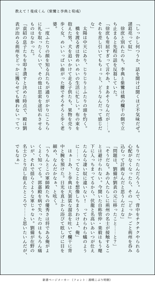 あきしの @katsumoku SS新書メーカー様などをお借りしてTwitterで投げていた短い文章たちの置き場です ☆quiet follow Yell with Emoji Tap the Emoji to send POIPOI 59