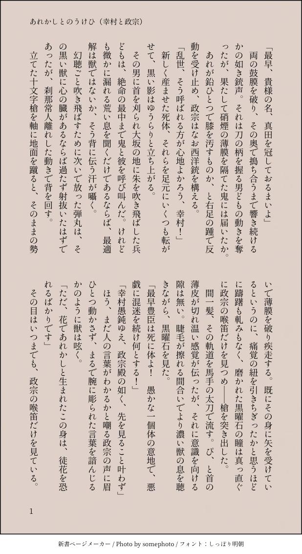 あきしの @katsumoku SS新書メーカー様などをお借りしてTwitterで投げていた短い文章たちの置き場です ☆quiet follow Yell with Emoji Tap the Emoji to send POIPOI 59