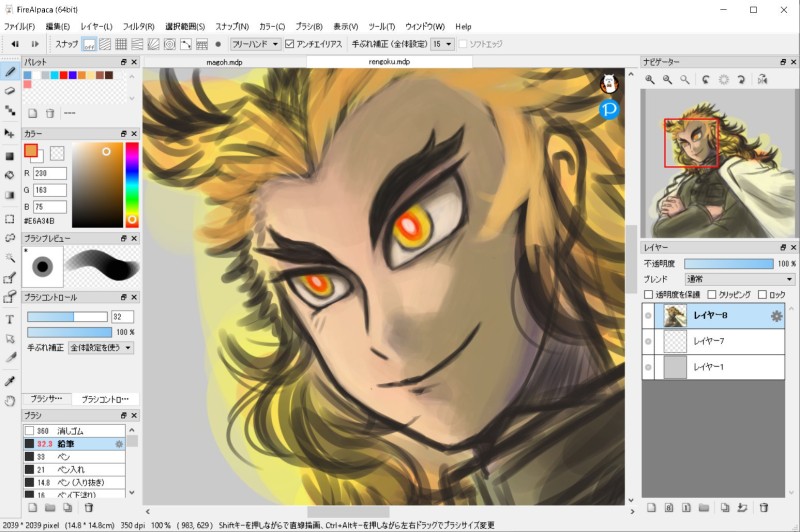 初描きの煉獄さん。カッコよくな~れ~カッコよくな~れ~って念じながら描いてる