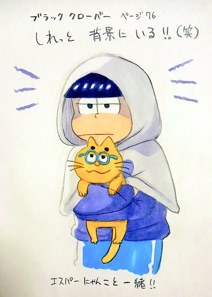 ブラッククローバーのアニメのコラボで背景にいた一松可愛かったな~落書き(2枚目は十四松)