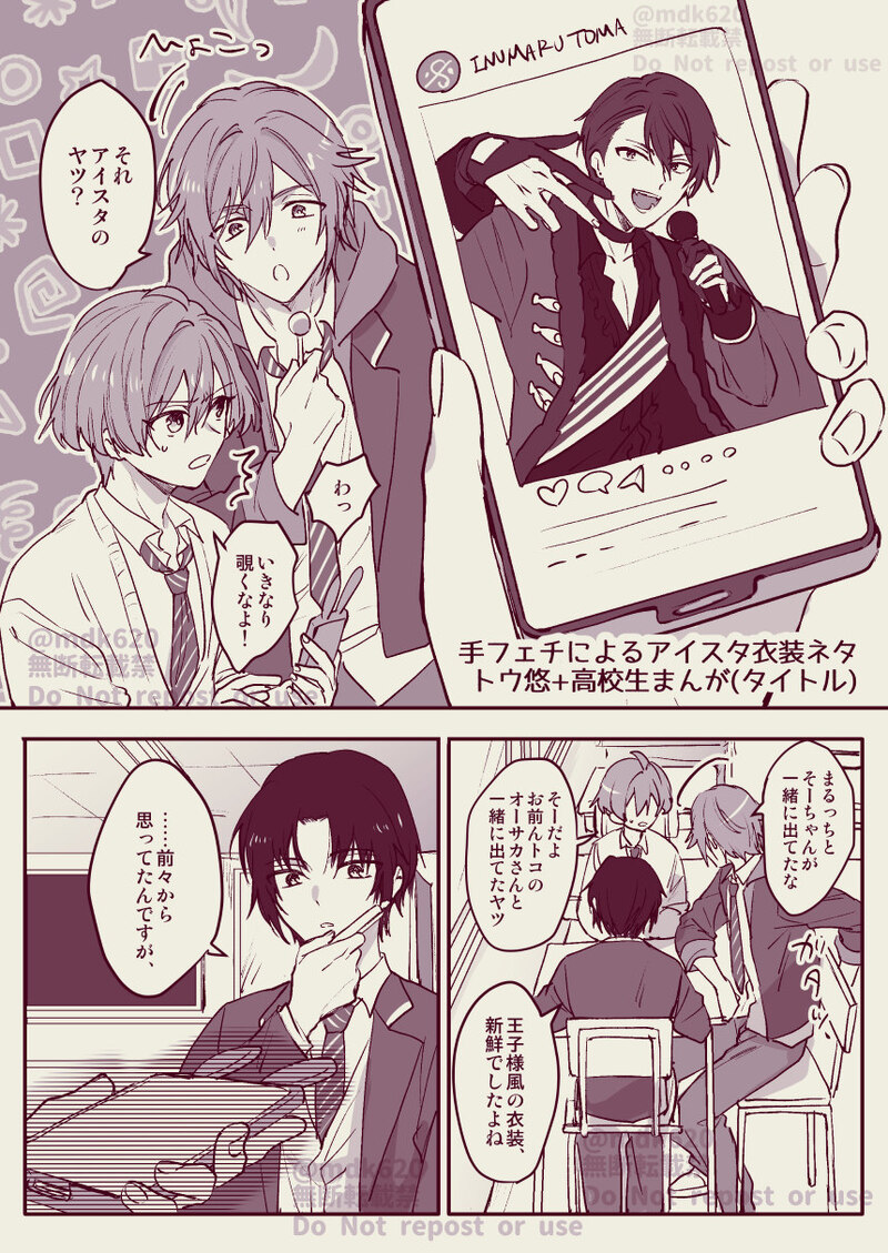 3/19のトプステにてトウ悠新刊購入くださった方に先着でお付けしたペーパーです。成人向け本のオマケとしてつけたペーパーなので、全年齢ですがそこはかとなくいかがわしいです。アイスタ衣装のトウマの指がえちすぎて…この指ではるちゃんはいつもとろとろにされてるのかと思うと…興奮やばかったです…(トウ悠こじらせオタクの誇大妄想でした)