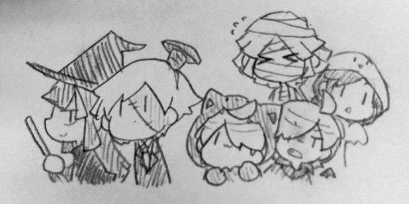 響子:魔女/千鶴:フランケンの怪物/詩音:狼男?/詠人:吸血鬼/扇雅:ミイラ/周旋:おばけ