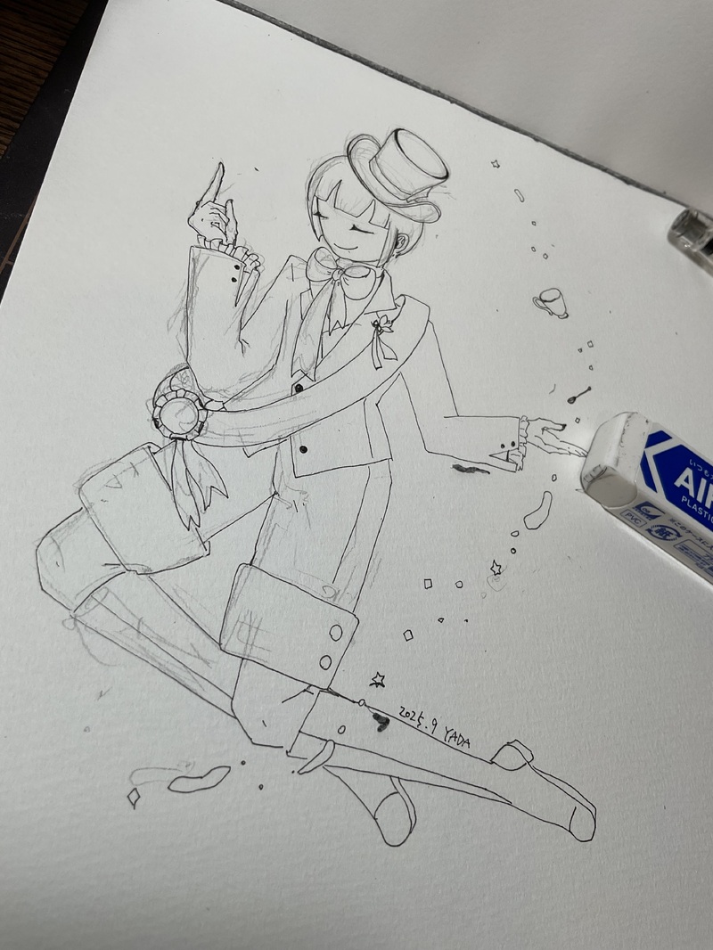 (下書き→1回目のペン入れ→消しゴムかけ→ペン入れ)
