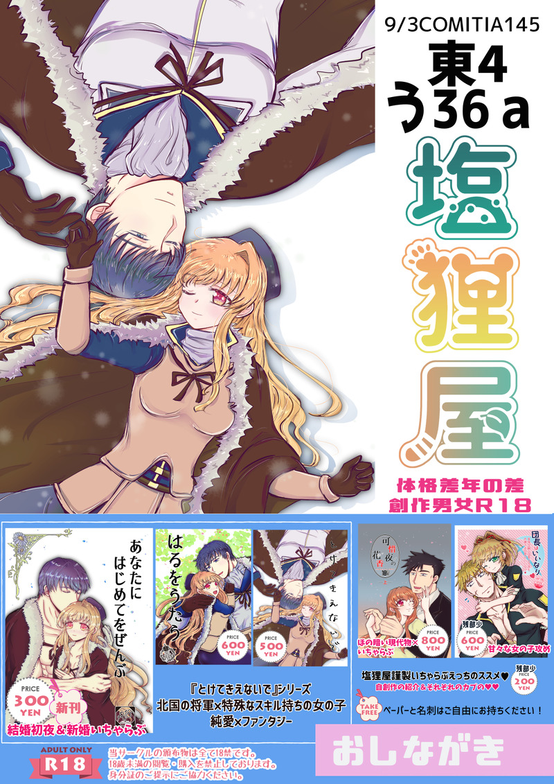 塩狸🍃☆quiet followMENU9/3COMITIA145『塩狸屋』は東4う36aになります!体格差年の差創作男女🔞新刊は『とけてきえないで』シリーズの結婚&新婚いちゃらぶ本「あなたにはじめてをぜんぶ」よろしくお願いします🙌新刊サンプル(R18表現含む)↓https://pixiv.net/artworks/111110326 ##告知 #創作男女 creators #コミティア145 #COMITIA145 #お品書き show all(+2 images) Tap to full screen (size:1240x1754).Repost is prohibited Let's send reactions! freqpopularsnackothersPayment processing Replies from the creator Follow creator you care about!☆quiet follow 塩狸🍃PROGRESS進捗数少ないお口シーンだ(もっと描きたかった) 塩狸🍃PROGRESS原稿進捗 いちゃっと…トーンここぐらいまで終わり 塩狸🍃PROGRESS🔞まだ途中ですがこんな感じ 塩狸🍃DONEネクタイといえば…?辛抱できず描いたやつ※梨深ちゃんの水着の元ネタはcherenさんです各方面にごめんと許して♥ 塩狸🍃PROGRESSしり下描きは終ってます 塩狸🍃PROGRESSえっちな梨深ちゃん related works pofuttaMENUCOMITIA145のお品書きです!お花と創作男子の本やグッズを持って行きます!よろしくお願いします❀.(*´ω`*)❀. 塩狸🍃MENU9/3COMITIA145『塩狸屋』は東4う36aになります!体格差年の差創作男女🔞新刊は『とけてきえないで』シリーズの結婚&新婚いちゃらぶ本「あなたにはじめてをぜんぶ」よろしくお願いします🙌新刊サンプル(R18表現含む)↓https://pixiv.net/artworks/111110326 3