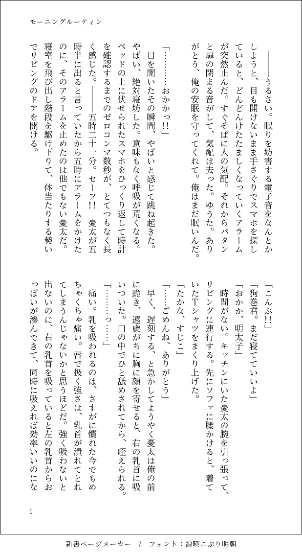 to_tori_ss☆quiet followDOODLEいぬまき君のおっぱいを飲んでしか生きられない呪いにかかったゆうたのはなし。書きたいところだけ。 show all(+2 images) Tap to full screen (size:618x1132).Repost is prohibited Let's send reactions! freqpopularsnackothersPayment processing Replies from the creator Follow creator you care about!☆quiet follow to_tori_ssDONE夏の乙棘利き字書きという素敵な企画に参加させていただき、熱帯夜をテーマに書いたお話です。普段と違う試みをしたりして、とても楽しく書きました!原作準拠した欠損の描写があります。 9 to_tori_ssDONEゆうたお誕生日おめでとう🎂💐片腕をなくして喉もだめになり呪術師をやめたとげくんがゆうたの子どもを産んだ世界線のお話です。ゆうたは四十路です。俺得注意⚠️ 5 to_tori_ssDOODLE👹🥜の乙棘です。タイトルは笑うところです。ゆうたの🍌が大好きなとげくんが好きです。18↑? 7 to_tori_ssDONE休暇を取る大人乙棘のはなし。いぬまきくんが普通に喋ります。 6 to_tori_ssSPOILERゆうたおかえり!生きててよかった!記念⚠️269話ネタバレに配慮していません諸々まだ咀嚼中なんですが、こういうのは書いておきたいよね、という話。成人ですか? 5 to_tori_ssDONE🐶くん視点→💍視点⚠️🐶くんが呪言を忘れて喘ぎまくる⚠️けっちょう責め 7 recommended works shiro_pigeonMOURNING第53回 #乙棘版ワンドロワンライお題『手紙』喧嘩からの仲直りです♪ 1323 ottg_0630DOODLE乙棘版ワンドロワンライ「扇風機」とある夏休み中の任務終わり。駅に向かうバスを待つ憂太と棘がついに一線を超えちゃう…?!お話。前々回?のテーマ「夏色」の続きの設定です。 1118 shiro_pigeonMOURNING第74回#乙棘版ワンドロワンライ大遅刻!お題『扇風機』+20min付き合っていない二人です。 4 MeguminDONE #乙棘版ワンドロワンライお題 「聖夜」「悪戯」過去お題をリメイクしました。言わせたかったんです🥺🫶❤️成人ですか?(y/n) 4 ぱくちひ/天の介TRAINING乙棘ドロ、お題「ギリギリ」で描いたやつ。ぬるいですが🍌出てるので18↑で🙏Q.18↑? →yes/no Neko39PASTHH・HB:2024年まとめ※腐:ルシアラ🍎🦌、ストリツ♈️🦉♈️ 16 瑠那🌙TRAININGミニぎゆうさんとミニじろうとむいくんのちょっとエッチなお話です。ミニぎゆうさんとミニじろうは大きめどんぶりに浸かりながら蕎麦を食べているとむいくんに捕まってしまいます。むいくんが大きな1ホールのショートケーキをミニじろうに食べさせて。何でも許せる方向けpassword→tktn1230 3 mochayu01DOODLE伝説の始まり hukutuurakkoDOODLE『DEAD LAND ZEDD』作:朝起きて白湯様KP:さわちゃん👑🌟HO1:かび❤️🔥🫶叶夢HO2:めめんと森🎤🎸バズール=オールHO3:BEEFJERKY○🥷❓ ☦️Typhoon Devil☦️HO4:ひいこ🧟💞Axel Miller Jr.HO5:ただのかげきち🥊🥋人志HO6:ケイ🎮🔫 ウィル・”n3verS"・トップHO7:ゆらのり👴💢