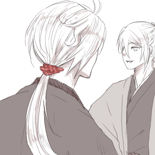 江戸時代の南泉くんの髪を結っているものが、よく浮世絵で猫が首輪に使ってる絞りの布だったらという絵。
