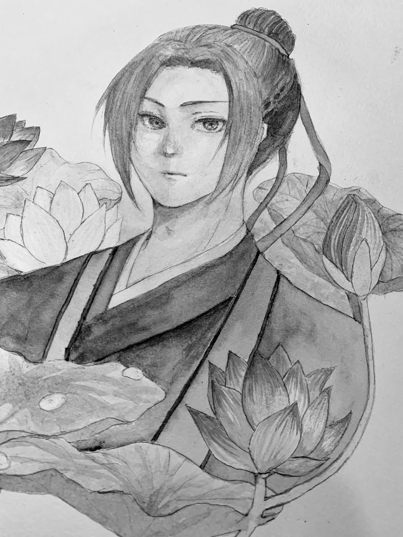 ほよよ……ひとまず水彩はこんなものかしら……。あとは取り込んで作業かな……。髪の毛もうひと塗りしたいかもだが。