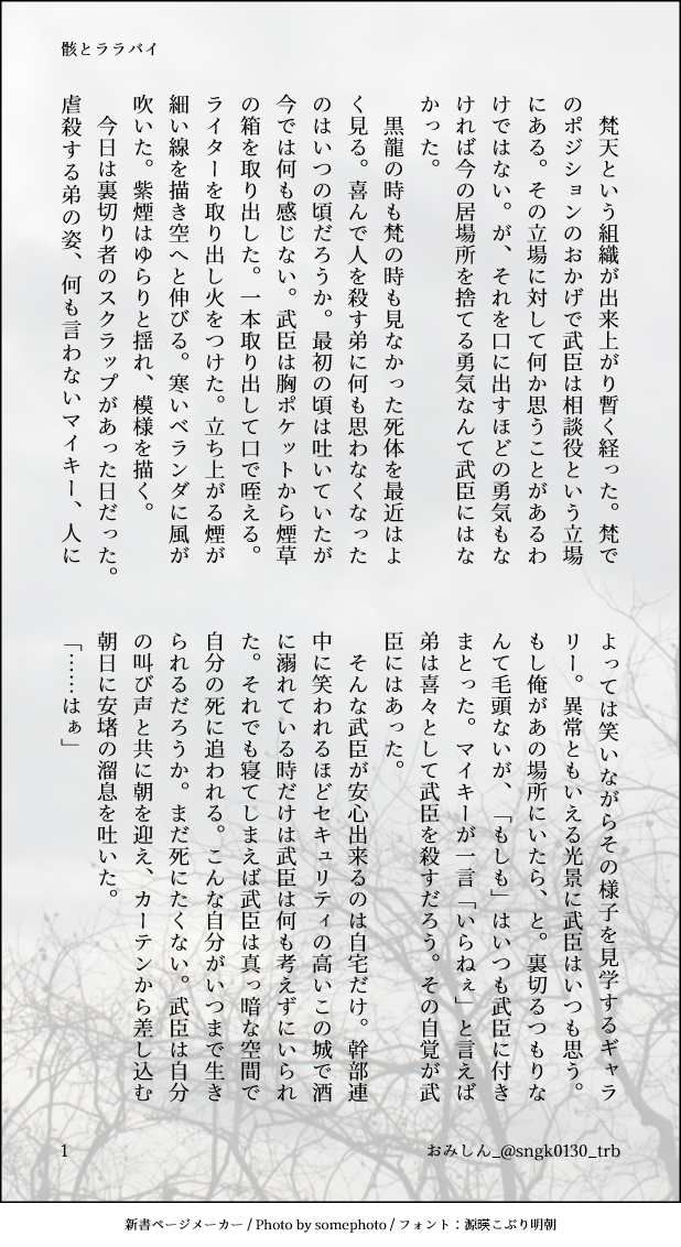 syunngiku0130☆quiet followDONE骸とララバイおみしん・梵軸武臣が真一郎の墓を掘り起こして遺骨を手元に置く話。やばいと思った人はブラウザバックでお願いします ##臣真 show all(+5 images) Tap to full screen (size:618x1132).Repost is prohibited Let's send reactions! freqpopularsnackothersPayment processing Replies from the creator Follow creator you care about!☆quiet follow syunngiku0130DONEイヌ武 / A hungry DogDom/Subのイヌ武です。Domいぬぴ、Sub武道になっています。パスワードはエアブースペースのweb拍手からPass:inutake20221218 6 syunngiku0130DONE2022/10/16発行『The Parallel world』のあとがき本のCDケースに貼り付けられたシール,もしく表紙3に貼ってあるシールのQRコードの近くに記載されているパスワードを入力してください。 5725 syunngiku0130DONEwreacking orderメンヘラの竜胆君と、竜胆君に執着されてしまった武道君な竜武 8 syunngiku0130DONEふたりはプリキュア!カク武がプリキュアしているパロ。それだけです。女装男子です自分でも凄い狂い方したなって思っている本当に読みますか?yes/no※配役※キュアブラック…花垣武道キュアホワイト…鶴蝶ミップル…イザナメップル…灰谷兄弟ピーサード…三途 16 syunngiku0130DONE最後の晩餐は終わらない寿武。とある現代軸大寿君と然程交流のない武道はある日大寿に呼び出しを受ける。大寿の店に訪れるが本題は話される気配はなく…?20220529_君のとなりにいたいから!武道受WEBオンリーの無配です。パスワードはwine 4 syunngiku0130DONEチップとソロベッド灰武(R15+)ストリップダンサーとして気まぐれにショーに出る灰谷兄弟と、ひょんなことから灰谷兄弟にハマってしまった客なリープ前軸武道。温いディープキスくらいしかないですが直接的な表現があるので閲覧は満15歳以上の方でお願い致します。貴方は15歳以上ですか?yes/no 11 recommended works maru_mixDOODLEショタ #芥敦 ガブリ@アジドラ絵まとめました。PAST越界。義兄弟。驚くほど描いてないのは兄がとにかく描けなかったからなのです…ただ、尊い兄弟であります…!! 6 カズルMOURNINGまだイベント読んでないうちに!熟れた30代大学生エロくてよろしいな! 2 egg5204DOODLEへんな人じゃない!!にぃにだ! りりいちDOODLE本誌312夜 性転換予想ネタ 2 _0rqrTRAINING脹虎R-18/贖罪のように行為を求めるゆじと、それに応えるお兄ちゃん 碳烤腰果煎饼DOODLE■张郃相关摸鱼 4 ほんげげPASTXまとめ 脹虎 21 AbsPalPROGRESSこれは可愛い弟をみて辛抱たまらんてなってる兄ぽいぴくおためし投稿〜!