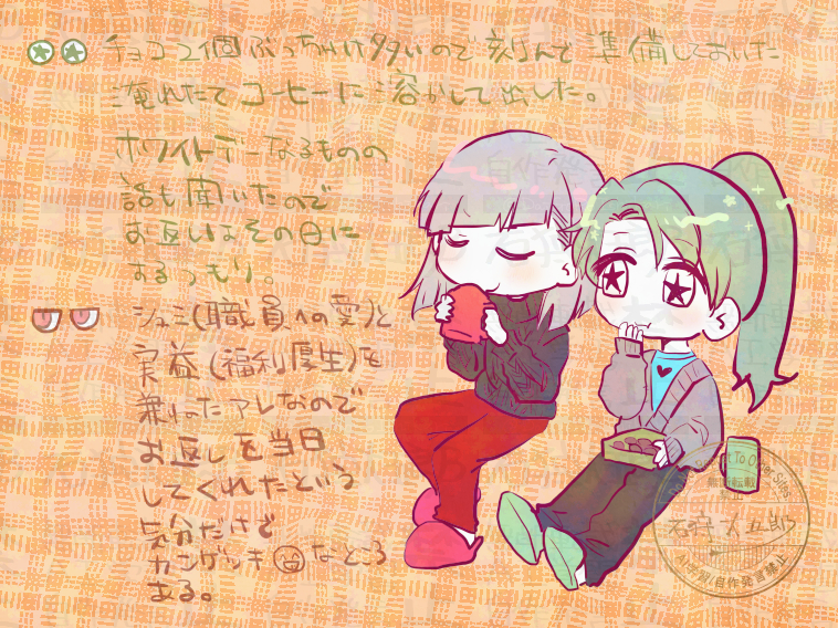 石狩大五郎☆こそフォロらくがき直前のバレンタイン(https://poipiku.com/1988555/12749891.html)のおまけなんだけど少々意図とか欲が出てしまったのでこれだけ隔離しております。今あるもの、今出来る範囲でお返しをする🌟が居たらいいよねの意です。 タップで全画面(原寸:758x568)無断転載禁止 リアクションをたくさん送って応援しよう! よく使う人気おやつその他支払処理中 作者からのリプライ 気になる人をどんどんフォローしよう!☆こそフォロ 石狩大五郎らくがきコピペアップの上限を通常のファイルアップと同じにしてくれメンス 2 石狩大五郎らくがき🌟×🌾 2/22 流石に些か怒られそうなので、怒らない人だけパスワード「OK」でどうぞ。1枚目は前提条件。そういやいろんな動物いるしなんなら鳥に至っては4匹はいるけど猫いないよね。 3 石狩大五郎らくがき管理人さんは記録をすべて埋めたいので、未来の自分の憤慨も知らずにちょっとそわっとしている。 石狩大五郎らくがき2/17の落書き 1枚軽い異性装 1枚🌟🌾①色素の薄い髪+赤い目が好きだと気付かされたの少々悔しさある②邪念 赤と黒の似合う人③🌾の死体転がってる部屋で作業したことが多分1度や2度じゃないだろうなあって思った 3 石狩大五郎らくがき2日分の落書きをまとめちゃうことにした。①このギフト+EGOのイナババが好き。あとめっちゃ合うわけじゃないけど「貴方だけが、幸せでありますように。」という楽曲を聞いていたので憎しみちゃんEGOに。②じっと眺めるとSAN値減りそうなタイプのAPP18ロバだったらいいですね。③思い込みクソバカ石狩の自戒の絵です。→名前合ってるかもしれない…本編を見直さなきゃいけない… 3 石狩大五郎らくがき星命学の歌詞の冒頭だけでいいので読んでみてほしいという気持ちです。そういえばデフォルトで微笑み顔の🌟というのが好きすぎてムスッと寄りの顔描くのレアでは?と思ったので1枚目に顔面アップを載せました。3枚目の文字は別に読まなくていいやつです。 3 おすすめ作品 MoMo_Utaseネタバレ #まおの箱庭 好きなシーンめちゃくちゃ良かった…優しい物語…弐も他シナリオもお待ちしてます 2 moon_4gureネタバレ皆RPが素敵すぎて時間があっという間だった…#まとぐしノノドロ※タグ忘れで上げ直し MoMo_Utaseネタバレ #まとぐしノノドロ最高だった〜〜この2人だからできる掛け合いたくさんあった素敵な卓をありがとうございました! どっかのたふネタバレ #まとぐしノノドロ🌵視点視聴ネタバレあり⚠️ 4 cafelattysubrinネタバレまた気の向くままに描いたシリーズラクガキなので大したことないないですが配役とシナリオネタバレ含みますので注意 3 ⛩⛩⛩ネタバレ #まとぐしノノドロ ※微ネタバレ好きな台詞らくがき。pass: ok ray_choco_らくがき🐥ノア視点エンドバレありよかったね! 2 たまゆら🐺ネタバレ品行崩壊この闇商人ジャック/ぐちつぼさん視点ネタバレ注意!! 2 M9_NE_ネタバレ #品行崩壊この闇商人ジャック視点、ネタバレ捏造ありです 4