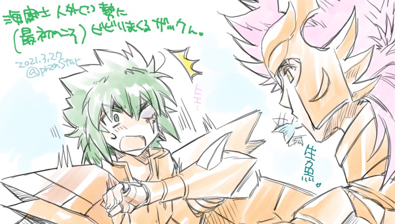 昨日のネタだけどイオぴのスプタンとか海闘士人外(?)勢のナチュラルな人外っぷりにビビるザックんが可愛い🐙という話。