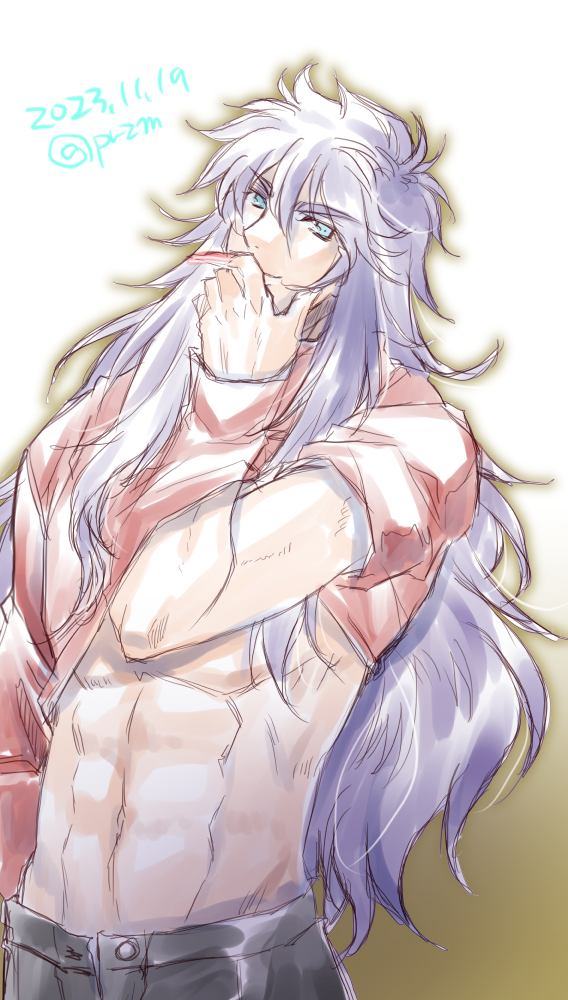 なんか最近よく見かけるシャツの下から手入れて腹見せる構図ミロさん🦂