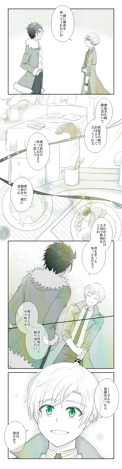 はるき☆quiet followDONE『エンゲージ・ブレックファースト』(アロルク)ワンドロに出したかった作品でした(大遅刻!)アロルクのプロポーズ、色んなパターンが見たい(6/12・画像を完成版に差し替えました) #アロルク allRounder show all(+2 images) Tap to full screen (size:500x1916).Repost is prohibited Let's send reactions! freqpopularsnackothersPayment processing Replies from the creator Follow creator you care about!☆quiet follow はるきDOODLEFF14うちうち サナシャムR18媚薬ネタ(https://twitter.com/stars_ffuni/status/1762069466081587459)で言ってたやつ宿の壁に寄りかかって中途半端に脱いだ状態でまず一回戦して欲しいんだ はるきDOODLEFF14漆黒ネタバレ 「あの人」もしくは「彼女」どんな人だったんだろうねぇ はるきDOODLEFF14 自機 漆黒5.0罪喰い化しかけて苦痛に呻いてる自機、それでも歩みを止めないところも含めてよかったな足が吹き飛んでも手が折れても腹に穴が開いても這いずっていくタイプだな…と思いました はるきDOODLEFF14 公と自機 おおよそカップリング寄りだがくっ付いてない5.0ラスト付近、自機は手を伸ばして触れそうだけど公はまだ触れなそうだなぁって思う。ためらいが無い人とまだためらいがある人。 はるきDOODLEFF14 公と自機 ※自機が半裸おおよそカップリング寄りだが別にくっ付いてはない 「君が人の身体を手放したというなら、私はそれを目に焼き付けたい。この手で触れたい。君の覚悟ごと全部、持って行くために。 ──でも君だけ脱がすのはフェアじゃないから私も一肌脱いできた」「?????」(このあと頼むから服を着てくれと言われたので「じゃあ着てから触りに来る」と返し公に逃げられる) はるきDOODLEFF14 クリタワ終わり~蒼天入る前の自機ふと思い出しては心の中で問いかける。返事は今日も、ない。 related works もだえDONE完成)アロルクエロ漫画完成しました!お寿司だけでなくいろいろな食べ物スタンプをお与えくださりありがとうございました!描きたいものいっぱいあって大変ですが、この後日談もいつか描けたらと思って描き留めてあります。 27 おののぽてこDOODLEアロルク3本繋がり/豆まき/マーキング 5 1hF4nlDOODLE※女体化※フォロワーさんが誕生日お祝いに書いて下さった素敵小説の感想絵です。本当に可愛くて読むと幸せになれるお話なのですが、私の乏しい画力ではとてもその可愛さを表現できませんでした…。 うーだらりSPOILER続きが書けなかったんだけどエンド後の…アロルク…?このあと記憶喪失になったルークに翻弄されて最後のコマみたいな顔するアーロンがいっぱい出てくる漫画読みたいです、導入はフリー素材だから続き欲しい 2 水無月SPOILERワンクッションお試しも兼ねて。ミッション17辺りのネタバレ自宅アロルクif設定(※そしてこの設定の一部から派生した、友人作の青年ルクヒロ初夜翌日話(その節はご馳走さまでした…!)→https://poipiku.com/IllustViewPcV.jsp?ID=2082911&TD=4038445 3 bezel_arlkDONE捜査中キスしないと出られない部屋に閉じこめられた未満アロルク漫画 やおいです 8 cottonpiricaDOODLEワンドロお題で学パロ(アロルク♀)ルク♀なのでワンクッション。ヤンキーと優等生という王道も好きだし、幼なじみ設定も好きだし…とアレコレしてたら何故かルークに女子の制服着せてた…。金髪ショートの女の子が好きな所為かな。。。 kacyou_keylockDONE #アロルク版深夜の創作60分一本勝負『学パロ』で参加します。本編のネタバレっぽいのや色々混沌としてるのでワンクッション。にぎやかです。主に前半が。 6 もだえDOODLEアロルク。名前の話。どちゃクソネタバレあり。らくがき顔漫画 5 recommended works kimadosukoiSPOILER大遅刻の猫耳アロルク漫画の続き一コマだけ子アロ入ってるので、念のためネタバレ防止してます 2 かげるREHABILI【アロルク】揉みつ揉まれつ【お題】ラッキースケベ#アロルク版深夜の創作60分一本勝負 5 蒼夜海里SPOILER #アロルク深夜のワンドロワンライ祭り M8ネタバレ まるでいつか読んだ、おとぎばなしの【人魚】 ざくろDONEワルドギまとめ 3 CkaBmbDONE09月19日BMBオンリーの時のペーパーアンソロ用のペーパーです※若干ネタバレありなので未クリアのかたは注意 2 AmrnmUmiDONE【12/19 1:00修正・再掲】お題箱より「花吐き病を発症したルクの両片思いのアロルクハッピーエンド」です。ハッピーエンドです!!!安心して読んでください!!!※入れるつもりだった重要なネタを入れ忘れるというポカをやらかしたので修正して再掲しました… 10 AmrnmUmiDONEこれも格納し忘れてたやーつ。https://twitter.com/AmrnmUmi/status/1451518730744201218?s=20&t=xcYAdGJwVc3NJtKKBkheuA みかん女MEMO前話していた、らんま2/1の設定 900 AmrnmUmiDONEある雪の日の話 アロルク4p+おまけアロ視点2pの短編です! 6