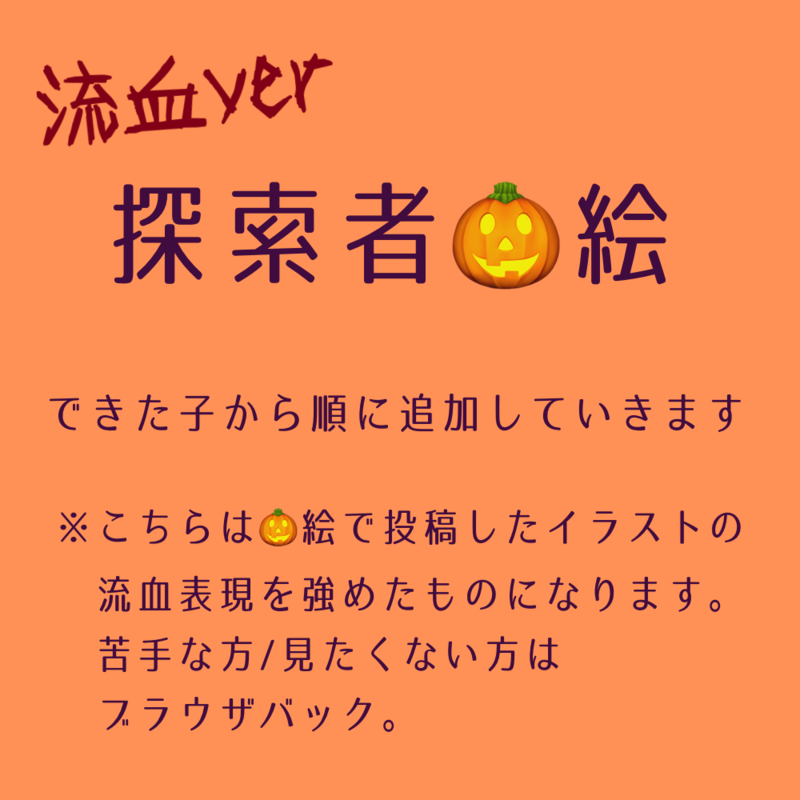 39601_trpg☆quiet followDONE探索者🎃絵 流血ver.こちらは🎃絵で投稿したイラストの流血表現を少し強め(当社比)にしたものになります。苦手な方・見たくない方はブラウザバックをお願いします。 show all(+4 images) Tap to full screen (size:1000x1000).Repost is prohibited Let's send reactions! freqpopularsnackothersPayment processing Replies from the creator Follow creator you care about!☆quiet follow 39601_trpgSPOILERRy-06 現行未通過❌せっかくなので見てみてをします…🐠ブクブクブク🔑通過済み?→y/n 3 39601_trpgSPOILER四季送り バレあり🔑→通過済みですか? y/n 39601_trpgDONE拝啓、よだかの星へ。HO2六津風美詞の立ち絵です!色々と好きを詰め込めてHappyです✨ 10 39601_trpgDONE人魚飼育係HO3 旭川漣の立ち絵です!差分は今後作りたい気持ち… 39601_trpgDONEOPEN HO3 双見三郎の立ち絵です!とりあえずある分だけでも… 39601_trpgSPOILER鰯と柊 バレあり鰯と柊 HO鰯 弥胡とのかさんの立ち絵です!気が付けば沢山差分を描いており…相方さんの方を見れる差分を作れたのが大満足です!✨ 21