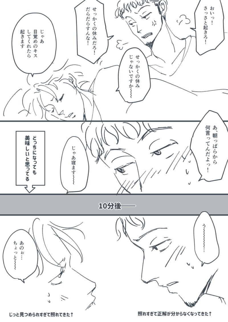 ピュアな巳虎くん好き…私の趣味……前の日に散々ベッドの上で啼かされているのに、朝には照れるのですよ、ピュア巳虎くんは(*´∀`)