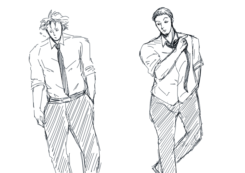 ぼんやりと資料みながらざっくりと落書きしました。ワイシャツの袖まくりっていいですよねー。2020/12/17