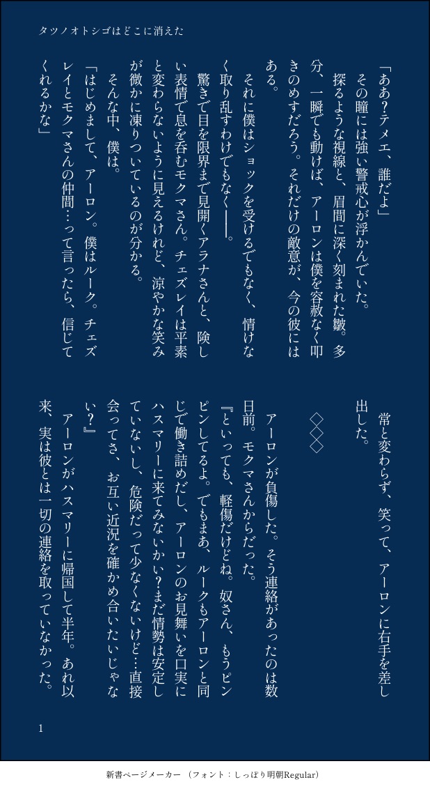 アロがルクだけを忘れてしまうお話。そのプロローグになります。いずれ本にする予定…です…