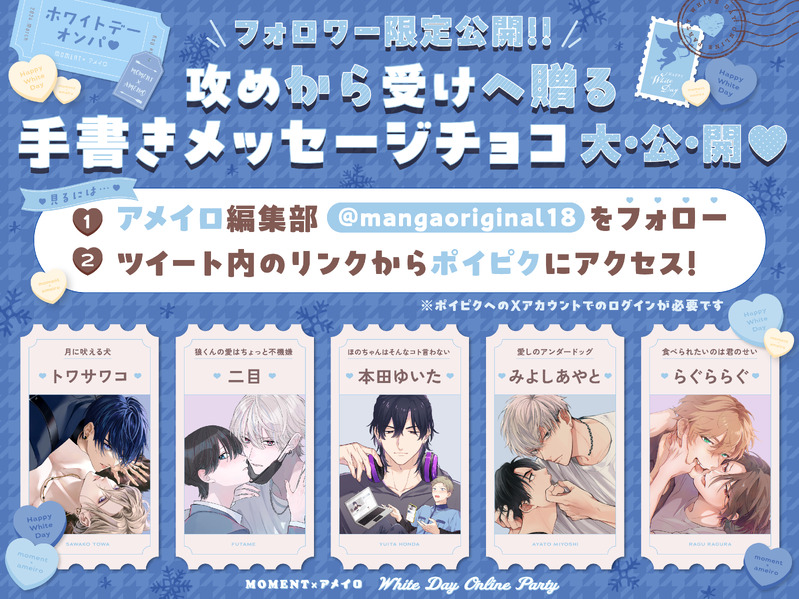 アメイロ編集部☆quiet followINFO🤍#ホワイトデー オンパ🤍˗ˏˋ🍫参加作家さま直筆🍫ˎˊ˗攻め ➵❥➵ 受けへ贈ったメッセージチョコを公開💖⚠️フォロワー限定公開⚠️見るには下記が必要です👇✅アメイロ編集部のXをフォロー🔗https://x.com/mangaoriginal18✅ポイピクへのXアカウントでのログイン受け ➵ 攻め ver👇https://bit.ly/49O38H7 show all(+5 images) Tap to full screen (size:4167x3125).Repost is prohibited Let's send reactions! freqpopularsnackothersPayment processing Replies from the creator Follow creator you care about!☆quiet follow アメイロ編集部INFO🤍#ホワイトデー オンパ🤍˗ˏˋ🍫参加作家さま直筆🍫ˎˊ˗攻め ➵❥➵ 受けへ贈ったメッセージチョコを公開💖⚠️フォロワー限定公開⚠️見るには下記が必要です👇✅アメイロ編集部のXをフォロー🔗https://x.com/mangaoriginal18✅ポイピクへのXアカウントでのログイン受け ➵ 攻め ver👇https://bit.ly/49O38H7 6 アメイロ編集部INFO🍫#バレンタイン オンパ🍫˗ˏˋ✨参加作家さま直筆✨ˎˊ˗受け ➸♡➸ 攻めへ贈ったメッセージチョコを大公開💖≪見るには…👀💓≫画像をタップ&RP🔁 6 related works 🐟️( ’-’ 🌭)DOODLE絞めるところは絞められるいい男 九尾のキタキツネDONE自分の手作りチョコの擬獣化、チョコラーテ(🐱)タルト(🦔) はすみPROGRESS🍫23/01/27「十四日の猪口屋」線画(途中)です。 ディルDOODLE k_tar0taSPOILERルミナリア感想・年表及びエピソードのネタバレはもちろんですが予想や妄想にも満ちあふれています。・スキット観ながら実況ツイートしてる(オーディオコメンタリー的な)感じの駄文です。ご了承ください。・全然なんの匂わせも無かった訳ですが重度の男女カプ厨が書いてますので所々ご注意ください。 5157 はすみPROGRESS🍫23/01/28「十四日の猪口屋」線画(途中)です。 MyluvBeMEMO2020/03/14ほんとしんちゃんみたいな感じで職場から帰ってきました😂ww natsumeDONE遅ればせながらホワイトデー。バレンタインの時にお菓子くれた方々、ありがとうございました! どろんDONE仕返しされる身に覚えがありすぎてプレゼントを素直に受け取れないうさぎ 4 recommended works らんちゅう@skeb受付中DOODLEくっつけたいだけのらくがきに色を塗りました 2枚目は別に大したことないけど一応肌色差分で一応そんな感じなのでご注意 むしろ1枚目が着衣差分な気分です 2 macoDOODLE twilight_topazMEMO先王に寵愛されていた宦官のその後的な。このあとも色々波乱の人生になりそう。 水滝柏PROGRESSバレンタインイラスト進捗衣装決まった! ありす(元うさ実、マネキネコ)DOODLEいつも乳首なので、下腹部にしてみました。。♡クリスタが途中で落ちて、色を塗り直したのですが薄くて恐縮です<(_ _)> たつやんDOODLE【創作BL/満弦】大学時代を考える何というか初恋であまりにも好きだったから肩に手を回すだけで内心ドキドキしてたかもしれない20210731 shrike_loveDOODLE共依存の恋(劇薬)お前の人生ごと奪うぐらいなら、こんな恋しなければ良かった僕はこの恋のためなら何だって構わないのが本心だって、いつになったらあなたは解ってくれるだろう 見縞みおTRAINING 4時起きDOODLEなんでもない。