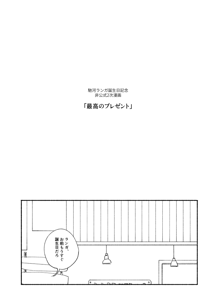 この漫画のランガと暦は付き合ってない、まだ友情のつもりで描いたのですが、それに関わらず二人がずっと一緒で格別で…どうせ未来付き合うので(私の中のフジョ世界の話)もうラン暦でいいやってなりました。ランガがいつも幸せでありますように。誕生日おめでとう!