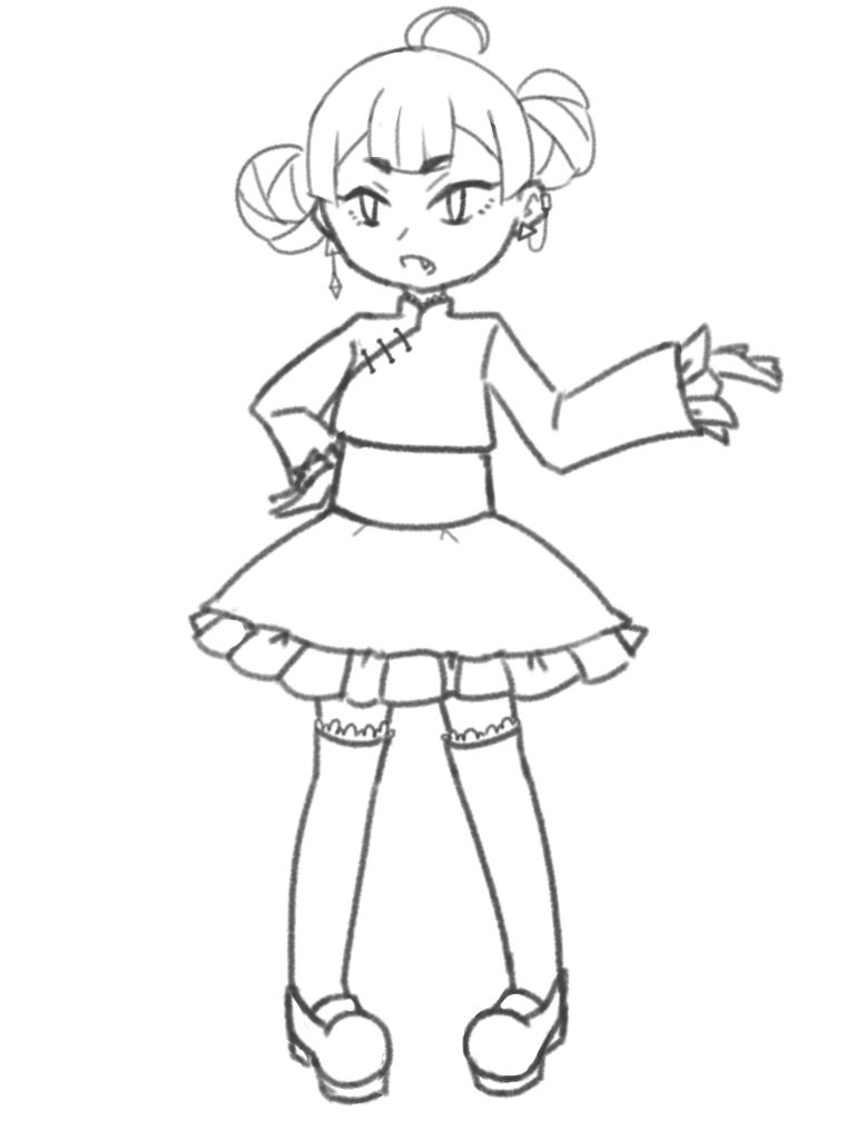 某絵師様の動画を見てフリル克服すべく描いてみたオリキャラの線画とカラーラフ