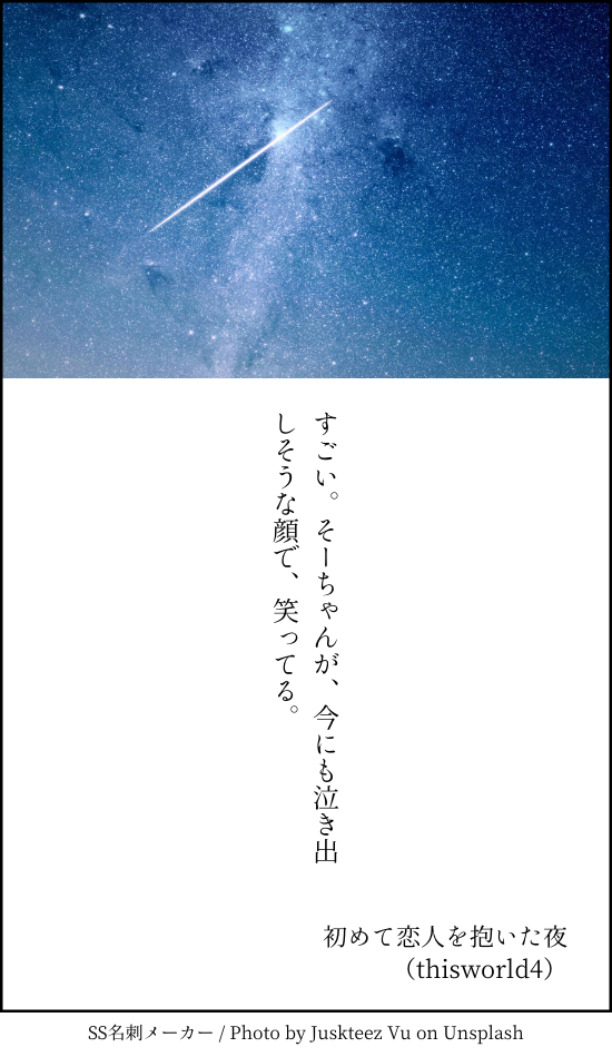 こうみ☆quiet followMOURNING初めて恋人を抱いた夜 ##供養 Tap to full screen (size:550x950).Repost is prohibited Let's send reactions! freqpopularsnackothersPayment processing Replies from the creator Follow creator you care about!☆quiet follow こうみDONE死に方を決めること 4 こうみDONEキャットウォークをつたう夜 8 こうみValentineデートはひと月後の予定 3 こうみDONE重ねた温度でうそを守って(環壮)5部配信分後の夜 3 こうみHappy New Yearステージの上で待ち合わせ(環壮) 3 こうみDONElifeis 露天風呂 2 recommended works こうみMEMO環くんのモノマネ、全然違うって言われてしまったけど、まだ観察が足りないかな……? 2 こうみMEMO食べ物がたくさん出てくる撮影だったからかな、環くんが終始子犬みたいな眼をしてた。 2 こうみMEMO一織くんは学校でいつも環くんと一緒にいるわけで、僕の知らない環くんのことも、たくさん見ているんだよね。 こうみMEMOたった今環くんが、焼く前の王様プリンの写真を送ってくれた……。さっきも見たよ。早く寝てください。 こうみMEMO痛みよりも、音のほうに驚くね。何度も肩を打たれてしまって恥ずかしかったな。 2 こうみMEMO僕のそばにいることで傷つき続けてしまうなら、離れたほうがいいと思ってるんだよ。 2 こうみMEMO丸一日スタジオにいると、時が経つのを忘れてしまうね。万理さんが慌てて呼びにきたと思ったら、二十二時を回ってた。 こうみMEMOナギくんは……ビデオ通話で話し始めたら、やっぱり泣いてしまった。明日式典に出るのに困るって言いながらすごく泣いてた。 4 こうみMEMOで、僕はお祝いがてら天体かまぼこを作ろうとして、指を切りました。