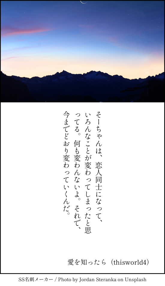 こうみ☆quiet followMOURNING愛を知ったら ##供養 Tap to full screen (size:550x950).Repost is prohibited Let's send reactions! freqpopularsnackothersPayment processing Replies from the creator Follow creator you care about!☆quiet follow こうみDONE死に方を決めること 4 こうみDONEキャットウォークをつたう夜 8 こうみValentineデートはひと月後の予定 3 こうみDONE重ねた温度でうそを守って(環壮)5部配信分後の夜 3 こうみHappy New Yearステージの上で待ち合わせ(環壮) 3 こうみDONElifeis 露天風呂 2 recommended works 10♦︎PASTポケモン、ゼルダ。 3 こうみMEMO こうみMEMO一織くんと学力テストの勉強をするって言うから、ホットミルクだけ差し入れて出てきてしまった。 こうみMEMO今回は十代の子たちが色々抱えているし、大人の僕たちがしっかりしなくちゃ。 こうみMEMO環くんとの件を抱え込んでたせいだろうって、リーダーにはさすがに叱られました。マネージャーにも少し……。 2 こうみMEMO君だけは特別だとか例外だとか言って適当にあしらってしまえたらよかった。 こうみMOURNING花を愛する人は、きっと故郷を捨てた人だ。 でんなつMAIKING塗らない方がかわいかったのでは…? こうみMEMO手の震えも止まらないし、なんだかずっと緊張しているみたい。どんな大舞台でも、こんなことは今までなかったのにな。 2