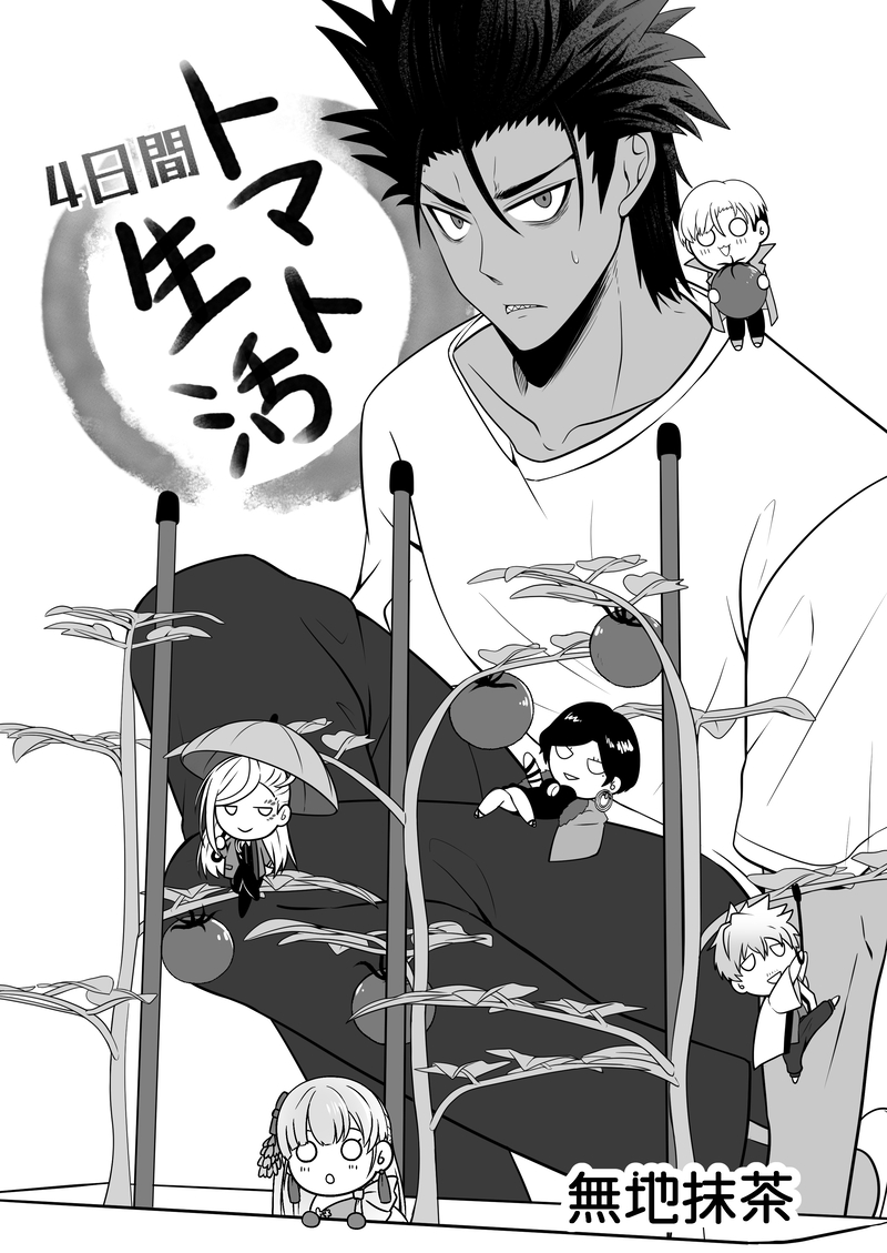 コピ本交換企画で描いたキ○タク4日間トマト生活パロの四コマ漫画です。