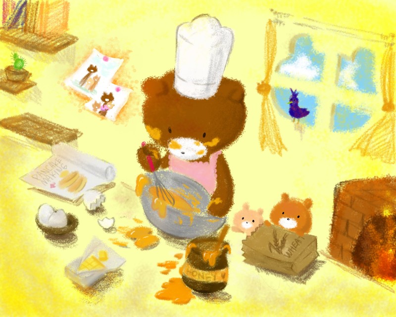 パンケーキを作るクマ🧸🥞🍴