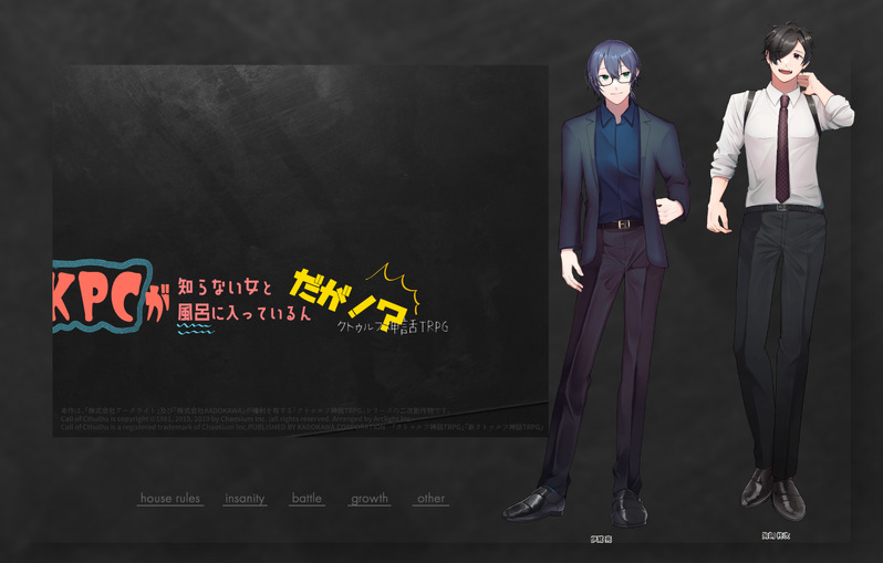 mamamaria31515☆quiet followDONECoC KPCが知らない女と風呂に入ってるんだが!?KP まりあ // 狗飼 柊次PL ちゅんさん // 伊鷺 亮 Tap to full screen (size:5467x3485).Repost is prohibited Let's send reactions! freqpopularsnackothersPayment processing Replies from the creator Follow creator you care about!☆quiet follow mamamaria31515DONECoC うみひどらKPレス りんごさん // 灰戸 健 まりあ // 卯波 サナ- エンド 1 - mamamaria31515DONECoC 触レル美術展KPレス りんごさん // 冥賀 水泉 まりあ // 葉室 萃 - END Y - mamamaria31515DONECoC バニラの指先KP りんごさん // 星乃 あざみPL まりあ // 鹿目 茉子 mamamaria31515DONECoC KPCが知らない女と風呂に入ってるんだが!?KP まりあ // 狗飼 柊次PL ちゅんさん // 伊鷺 亮 mamamaria31515DONECoC pakumoguKP まりあ // 狗飼 柊次PL ちゅんさん // 伊鷺 亮 mamamaria31515DONECoC なんかぽこぽこハートが出てくるんだけど!?KP まりあ // 楢 匡亮PL ちょ日和さん // 澤木 杜光 recommended works ひゅうが8番街DOODLE #我々の奇妙な日常 3 0531OimoSPOILERラフ すいげつSPOILER「二人の探偵」ネタバレ、捏造注意です。#我々の奇妙な日常#オールスター沼男「見かる」→「見つかる」指差し確認を忘れてました。 3 桐製の鈴SPOILER3セッション見れたのでそれぞれから好きなキャラ1人ずつ〜※2枚目微ネタバレあり#我々の奇妙な日常 #オールスター沼男 #なかよし沼 2 nirane_SPOILER @OMU_omurice0SPOILER #我々の奇妙な日常まとめ(リアタイ時の絵〜2周年の絵) 13 榾(ほた)SPOILER平太と姉ちゃん※沼男は誰だ(我々の奇妙な日常)ネタバレあり 3 わんこSPOILER本編ストーリーネタバレあります。お気をつけください。 3 lem927DOODLE