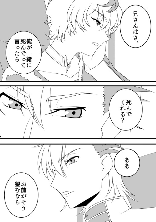 にんどむ☆quiet followDOODLE第1幕(1〜3話)見たあとに描き始めたやつだから第2幕(4〜6話)まで見た今だと「この兄なら言うわ」って思う。言えないのは弟の方。あと運転席のあの絶妙な距離感萌えるよね。 ##奪還のロゼ #ロゼアシュロゼ show all(+2 images) Tap to full screen (size:507x720).Repost is prohibited Let's send reactions! freqpopularsnackothersPayment processing Replies from the creator Follow creator you care about!☆quiet follow にんどむDOODLEお兄ちゃんの傷ついた顔を主食にしています にんどむDONEロススト恒常⭐︎4実装ありがとう。お兄ちゃんの胸筋盛られすぎワロタ にんどむDONE最終幕公開1周年おめでとうございました(本日8月31日) 2 にんどむPROGRESS牛柄(になる予定の)ビキニ にんどむDOODLEえっちなお誘いをする弟♀です。パスワードは「光和7年を皇暦に置き換えた場合の年数」(半角数字4桁)。 にんどむDOODLE丑の日だからね related works にんどむSPOILERロゼアシュロゼ(※下ネタ/第1幕(1〜3話)の内容を含みます) 3 にんどむDOODLE他人の会話 2 にんどむDOODLE次もきっと他人 にんどむSPOILER※死ネタ/第1幕(1〜3話)の内容を含みます。 にんどむSPOILERロゼアシュロゼ(※第1幕(1〜3話)の内容を含みます) にんどむSPOILER犬可愛く描けん(※第1幕(1〜3話)の内容を含みます) 2 にんどむDOODLE第1幕(1〜3話)見たあとに描き始めたやつだから第2幕(4〜6話)まで見た今だと「この兄なら言うわ」って思う。言えないのは弟の方。あと運転席のあの絶妙な距離感萌えるよね。 3 にんどむSPOILERお前は俺の断頭台(※暴力を想起させる描写/第1幕(1〜3話)の内容を含みます) recommended works たま◎DOODLEオーエン流オタク飯2020.4.18 たま◎DOODLE【カイ晶♀】アシストロイドがやってきた! たま◎DOODLE【カイ晶♀】逆トリして恋人になったふたり 2 CaHipopoDONE唐突に始まり唐突に終わるオー晶♂ 誕生日プレートのセリフやばかったよねという漫画 8 あるきDONE現パロのオー晶♀① 7 m_seriinaPROGRESSカイ晶2作目。見せられるところだけチラ見せですが、まだ変わるかもしれません。去年位に見た東京ラブストーリーの再放送が面白かったので、どろどろじゃなく楽しいところだけヒントにするかも。90年代オフィスラブ的なやつです。あとJRのクリスマスCMみたいな!BGM:Love Actually / Olivia Olson、突然 / FIELD OF VIEW 1530 りりいちDOODLE本誌312夜 性転換予想ネタ 2 kinka_byouTRAININGオー晶♀短文。『夢森チャレンジ2』より。6月お題の《走馬灯》をお借りしました。書きたいとこだけ出力したから唐突に終わる。 529 lilyfuziDONE【☕️】彼シャツガラハイ漫画‼️ 3
