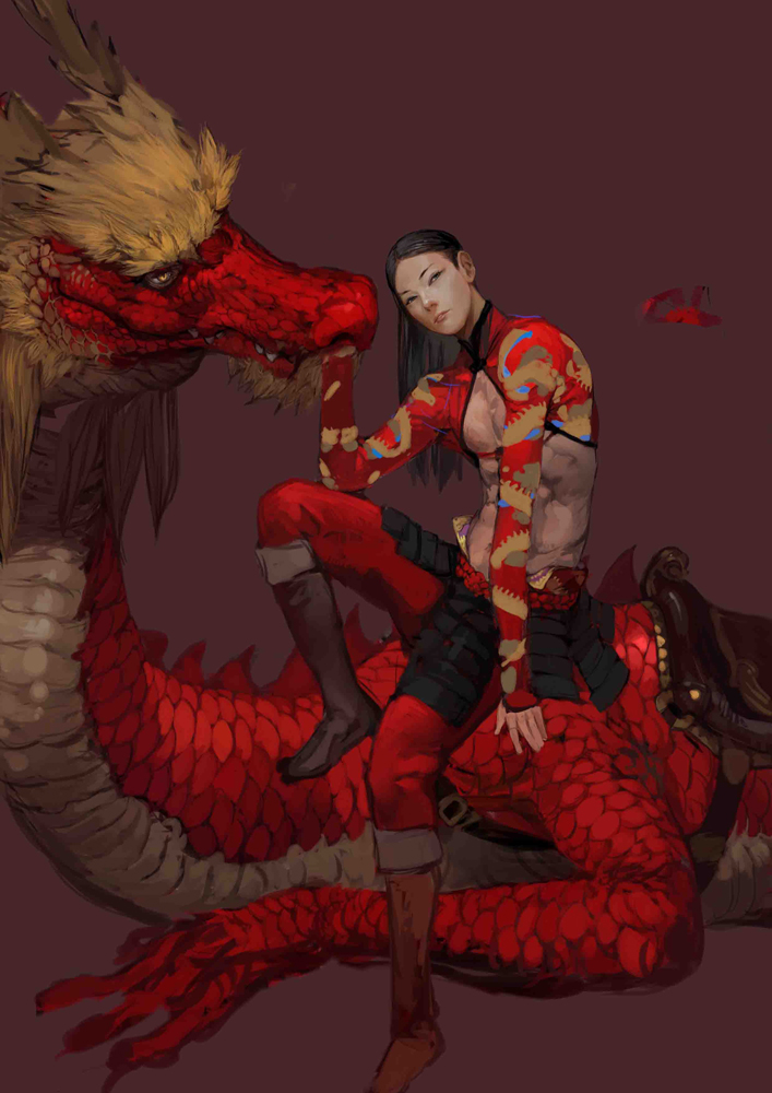 #竜と竜使い  赤い竜をこねくり回し出来るだけリアリティを感じてもらえるような描画を目指してます