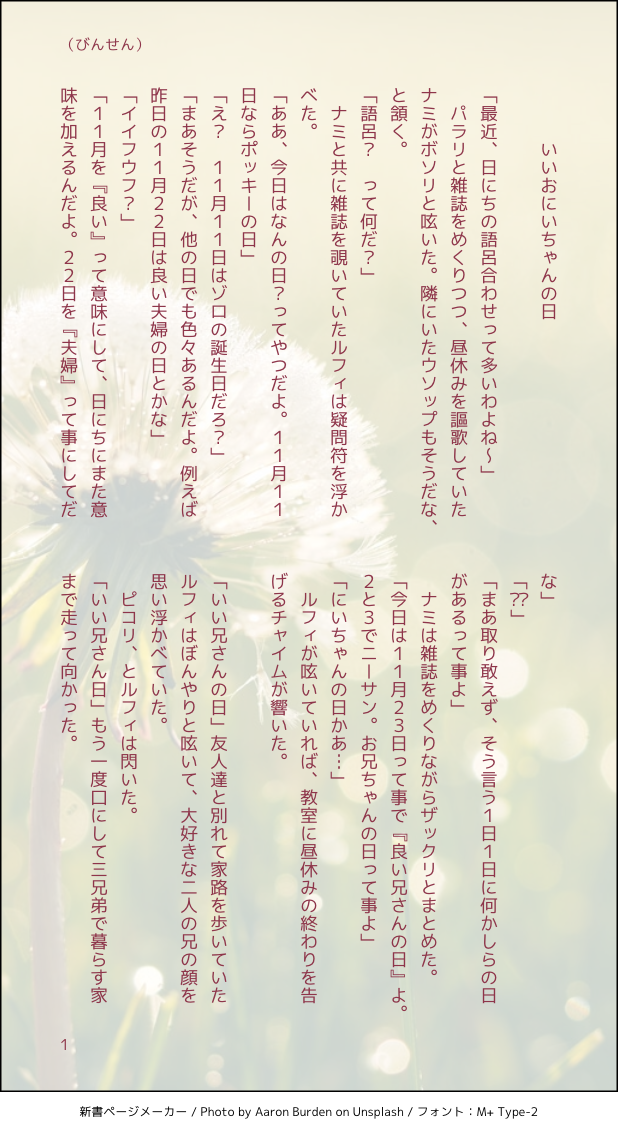 びんせん☆quiet followMOURNINGワンピASLいいお兄ちゃんの日 #ワンピ wampee show all(+2 images) Tap to full screen (size:618x1132).Repost is prohibited Let's send reactions! freqpopularsnackothersPayment processing Replies from the creator Follow creator you care about!☆quiet follow びんせんMOURNING神カイでお酒を飲んだ話し 2 びんせんMOURNINGモブ→→→カイ(神カイ)のお話し。恋に盲目なモブ、魅力的 10 びんせんMOURNING神カイのお話し。酒とタクシーと男二人 6 びんせんMOURNINGほんのり神カイの超SS。眠たいネ申域 2 びんせんMOURNINGメモの中に埋もれていたシャンルの、少しえっちちな超SSを供養します。pass:あなたは18歳以上ですか?→半角英数字 634 びんせんMOURNINGほんのり神カイ?🎲君と煙草と父親 3 related works ノウァDOODLEロー&コラさん※二枚目ゴマフアザラシロー 3 るんこPROGRESS終わんねーな!!!!!! にくみそまきPAST🥗混じってます 9 ノウァDOODLEロー&コラさんローおめでとう~ギリギリまにあった…?プレゼントはコラさんカスタムのくまぬいとかだといいなw ノウァDOODLEコラさん(アオハル風)きっと彼は高3。ローは高1かな。 ノウァDOODLEコラさん&ローIF生存の旅行中設定wメイクしてないコラさんもちびローは見てたと思うんですよ…コラさんがママすぎる…無理…(著しく語彙力を失う) 3 ノウァDOODLEローとコラさんフニャっと笑うコラさんかわいい…ローもかわいい… 4 むにおDOODLEわんぴまとめ 6 ノウァDOODLEロー&コラさん久々落書き。自分から沼に近づいてしまった気がするアアアア 2