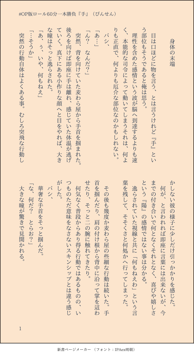 びんせん☆quiet followMOURNINGわんぴロール#OP版ロール60分一本勝負お題『手』 #ワンピ wampee show all(+2 images) Tap to full screen (size:618x1132).Repost is prohibited Let's send reactions! freqpopularsnackothersPayment processing Replies from the creator Follow creator you care about!☆quiet follow びんせんMOURNING神カイでお酒を飲んだ話し 2 びんせんMOURNINGモブ→→→カイ(神カイ)のお話し。恋に盲目なモブ、魅力的 10 びんせんMOURNING神カイのお話し。酒とタクシーと男二人 6 びんせんMOURNINGほんのり神カイの超SS。眠たいネ申域 2 びんせんMOURNINGメモの中に埋もれていたシャンルの、少しえっちちな超SSを供養します。pass:あなたは18歳以上ですか?→半角英数字 634 びんせんMOURNINGほんのり神カイ?🎲君と煙草と父親 3 related works ノウァDOODLEロー&コラさん※二枚目ゴマフアザラシロー 3 ノウァDOODLEコラさん(アオハル風)きっと彼は高3。ローは高1かな。 ノウァDOODLEコラさん&ローIF生存の旅行中設定wメイクしてないコラさんもちびローは見てたと思うんですよ…コラさんがママすぎる…無理…(著しく語彙力を失う) 3 ノウァDOODLEロー&コラさん久々落書き。自分から沼に近づいてしまった気がするアアアア 2 ノウァDOODLEロー&コラさんローおめでとう~ギリギリまにあった…?プレゼントはコラさんカスタムのくまぬいとかだといいなw ノウァDOODLEローとコラさんフニャっと笑うコラさんかわいい…ローもかわいい… 4 むにおDOODLEわんぴまとめ 6 るんこPROGRESS終わんねーな!!!!!! にくみそまきPAST🥗混じってます 9 recommended works komehazesukiMOURNING横顔練習 ーーーPAST 6 フリンMAIKING♪︎細かくて細かくて(手が)震える~完成思うほどツラく感じて~ もどきちPAST目線の先まで考えて描いてなかった ノウァDOODLEハルノ(ジョジョ)黒髪時もかっこいいジョルノ。日本で仗助と同じ学校に通ってたりしてたとしても萌えるなぁ(*‘ω‘ *) ノウァDOODLEジョジョ5部アニメ&原作(34話、133-135話)感想① ※キャラ崩壊亀って二次元では喋るのか…ジョルノとかなんで疑問持たず順応できるんや…すごいな… 2 ポン酢DOODLEホアルバさん❄ a3_m100DOODLEミスターー!!!うろ覚えがき aoyadayohonmaDOODLE色々追加したり塗る予定だった 3