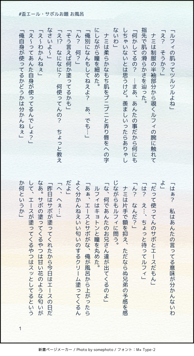 びんせん☆quiet followMOURNINGワンピ盃エール・サボル お題『お風呂』サボ君がスタ◯の店員になったらな妄想 #ワンピ wampee show all(+9 images) Tap to full screen (size:618x1132).Repost is prohibited Let's send reactions! freqpopularsnackothersPayment processing Replies from the creator Follow creator you care about!☆quiet follow びんせんMOURNING神カイのお話し。酒とタクシーと男二人 6 びんせんMOURNINGほんのり神カイの超SS。眠たいネ申域 2 びんせんMOURNINGメモの中に埋もれていたシャンルの、少しえっちちな超SSを供養します。pass:あなたは18歳以上ですか?→半角英数字 634 びんせんMOURNINGほんのり神カイ?🎲君と煙草と父親 3 びんせんMOURNINGほんのり神カイ?1999.09.26に思い馳せ 5 びんせんPROGRESSオメガバ神カイの書きかけとっても書きかけ 8 related works ノウァDOODLEコラさん(アオハル風)きっと彼は高3。ローは高1かな。 ノウァDOODLEコラさん&ローIF生存の旅行中設定wメイクしてないコラさんもちびローは見てたと思うんですよ…コラさんがママすぎる…無理…(著しく語彙力を失う) 3 ノウァDOODLEロー&コラさん久々落書き。自分から沼に近づいてしまった気がするアアアア 2 ノウァDOODLEロー&コラさんローおめでとう~ギリギリまにあった…?プレゼントはコラさんカスタムのくまぬいとかだといいなw にくみそまきPAST🥗混じってます 9 ノウァDOODLEローとコラさんフニャっと笑うコラさんかわいい…ローもかわいい… 4 むにおDOODLEわんぴまとめ 6 るんこPROGRESS終わんねーな!!!!!! ノウァDOODLEロー&コラさん※二枚目ゴマフアザラシロー 3