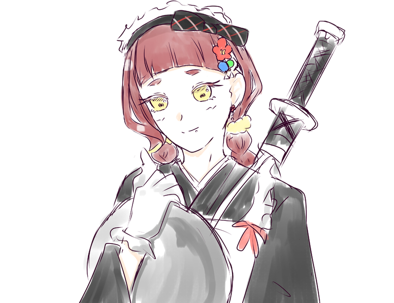 ピンク目の黒髪ぱっつんはデザイン頂いた子を描かせて頂いた子💕︎