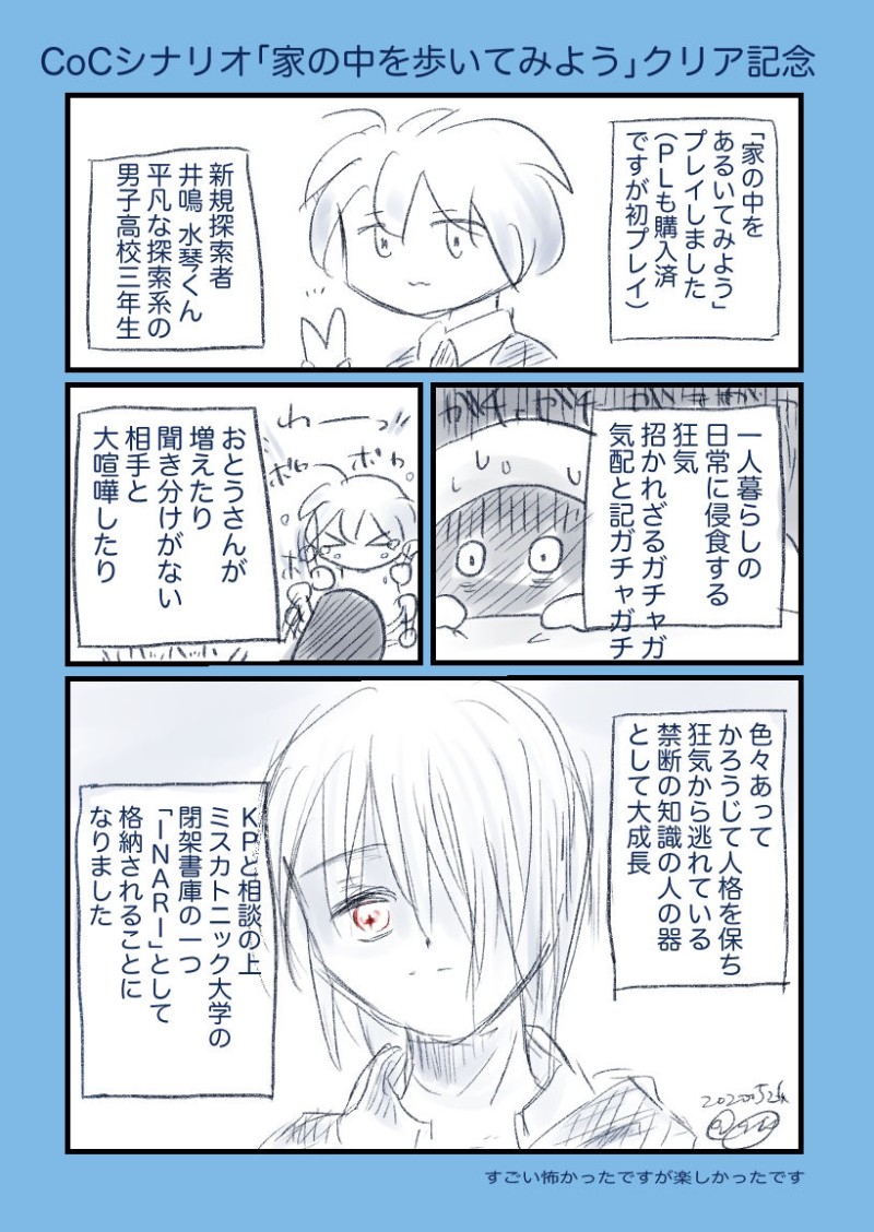 【微ネタバレ】CoCシナリオ「家の中をあるいてみよう」プレイレポです。微ネタバレを含みます。